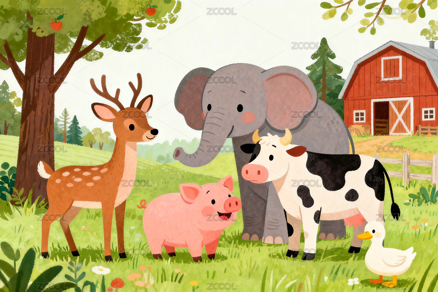 常见的农场动物-山羊,鸭子与鸡的家庭等