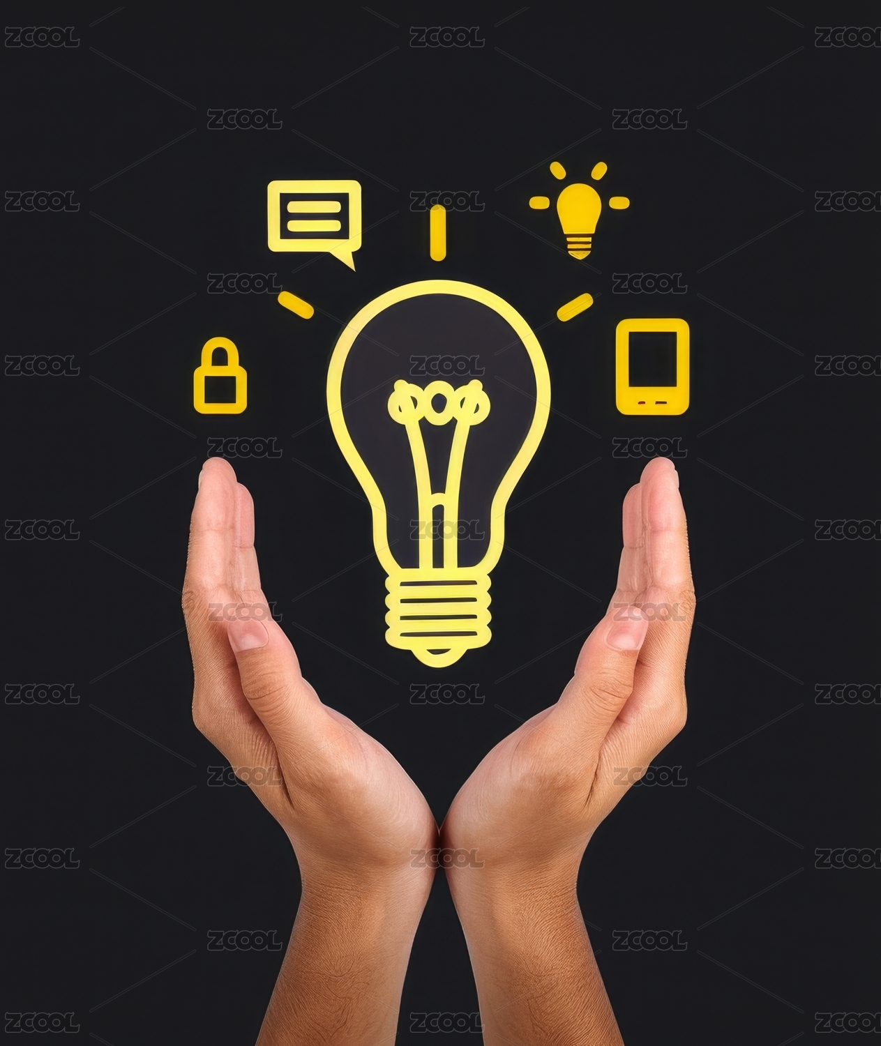 双手托举发光灯泡创意象征