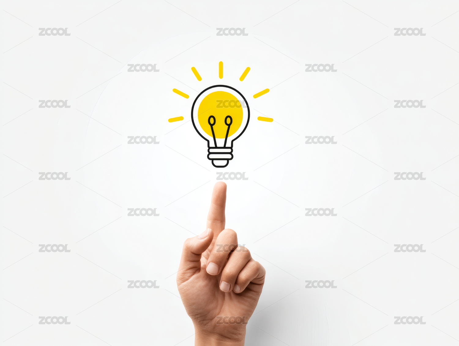一只小手指向一只灯泡