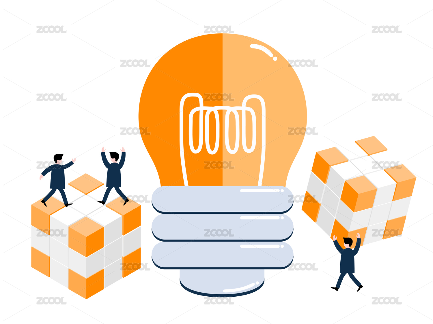商务合作创意思维简约科技风矢量插画