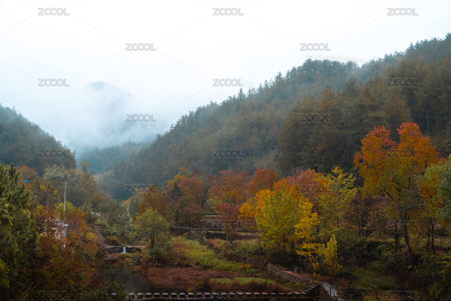 深秋山坡上的红色黄栌树,中国山东省青州市天赐山