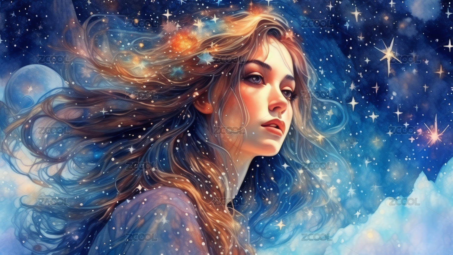 唯美的抽象艺术感螺旋的夜空下的女孩
