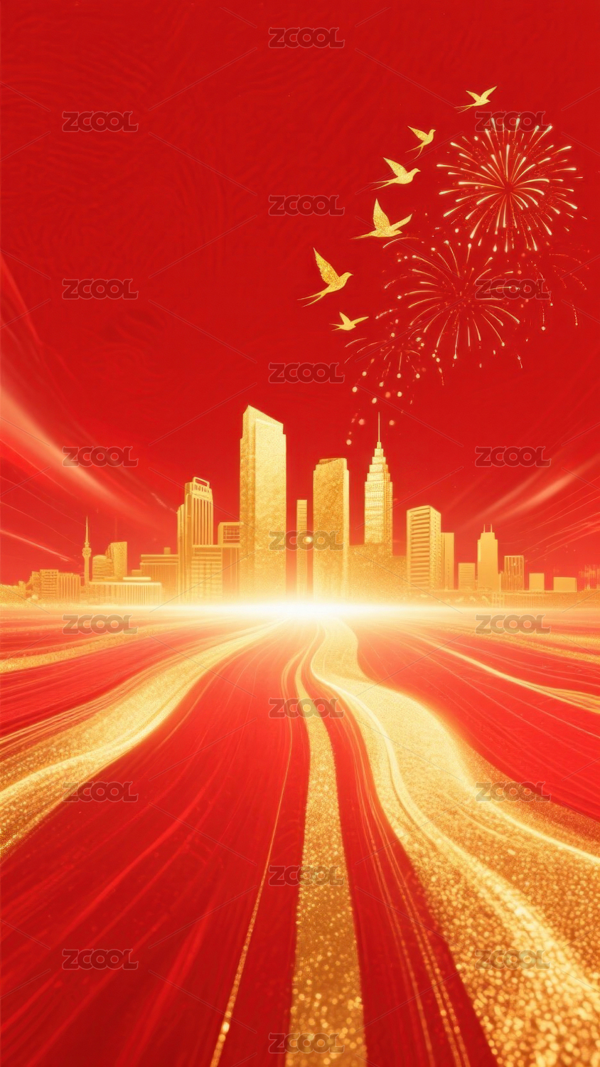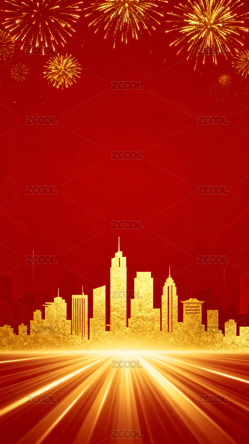 背景,设计,建筑,城市,高楼,夜空,红色,金色,节日,光束