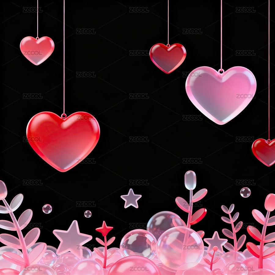 黑色,背景,简洁,心形,气球,悬挂,红色,粉色,透明,装饰