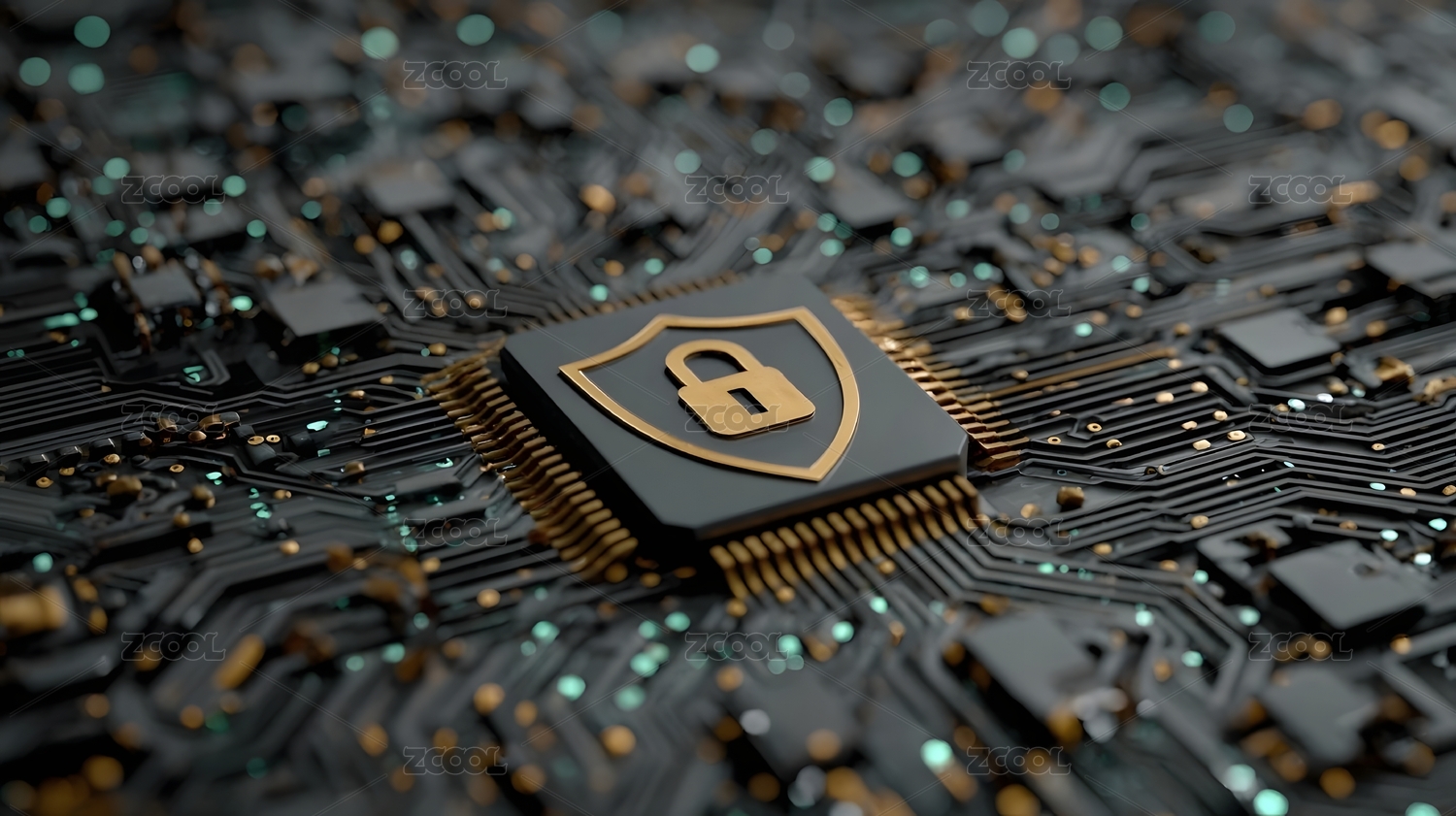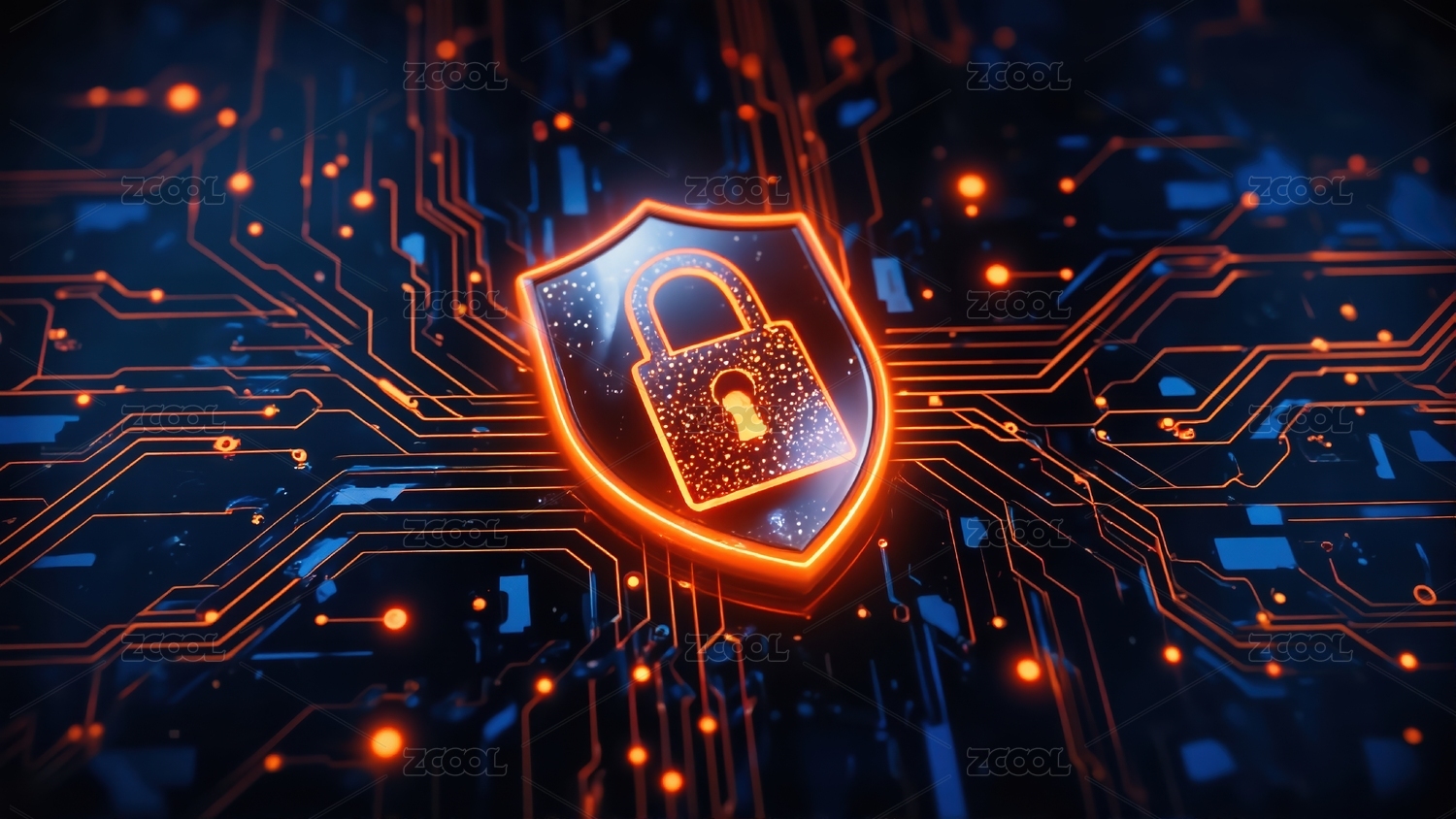 人工,智能,安全,盾牌,锁,网络,数据流,技术,数字,插画