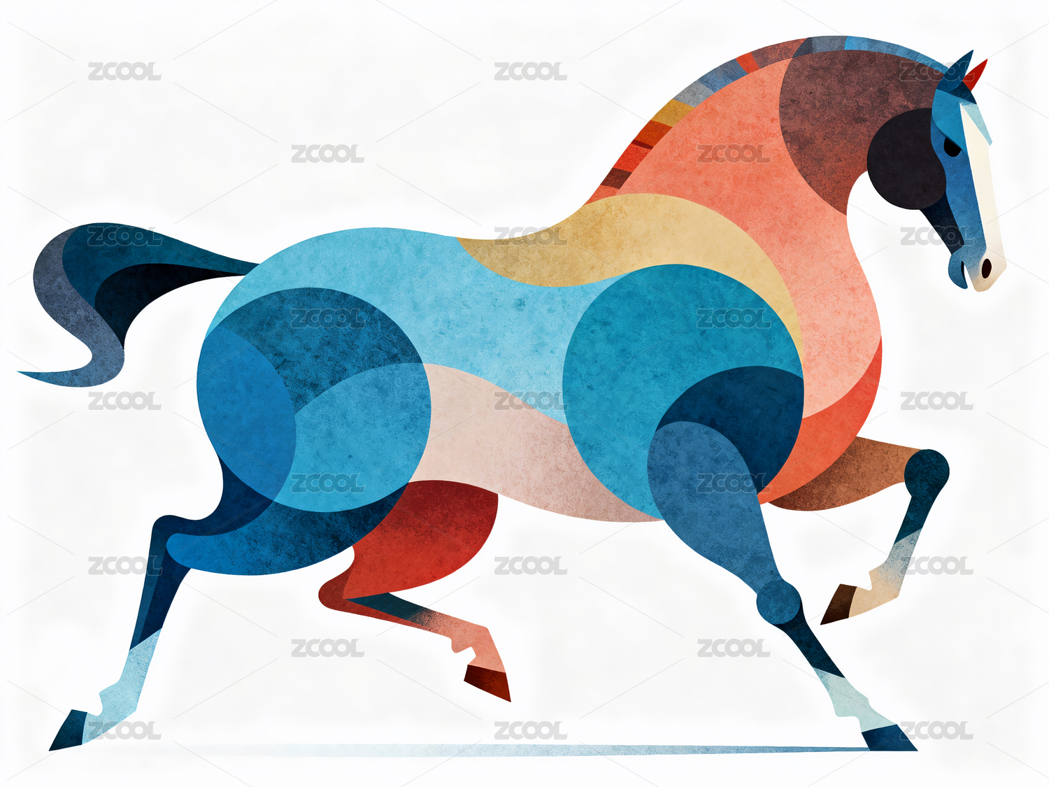 国风,国潮,抽象,超现实,插画,艺术,绘画,马,生肖,马年