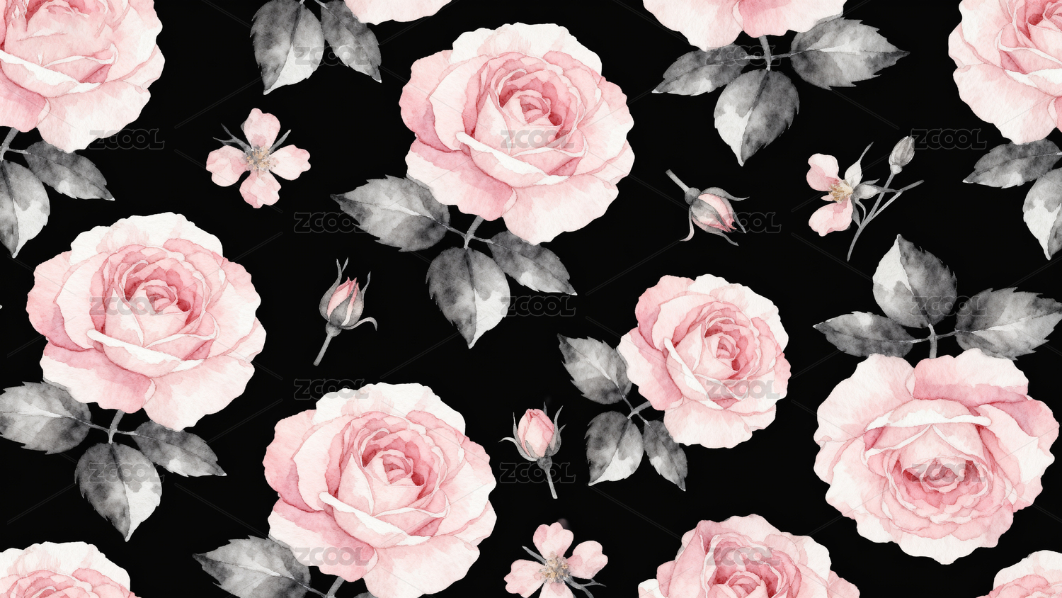 紫玫瑰,蓝蝴蝶,黑色背景,闪耀光泽,花朵图案,翅膀飞舞,梦幻唯美,紫色调,艺术设计,美丽绽放