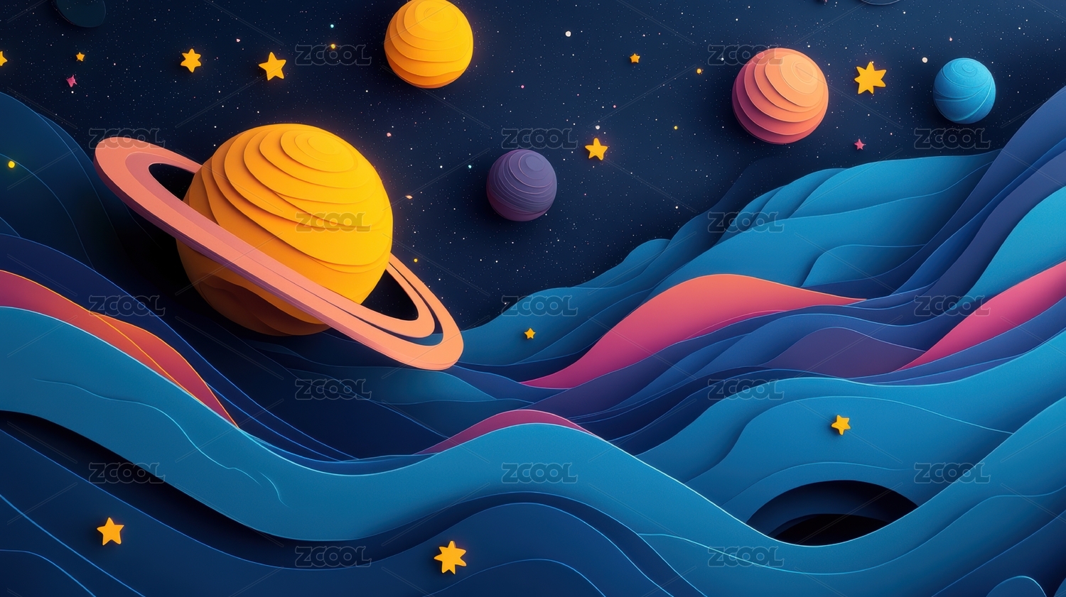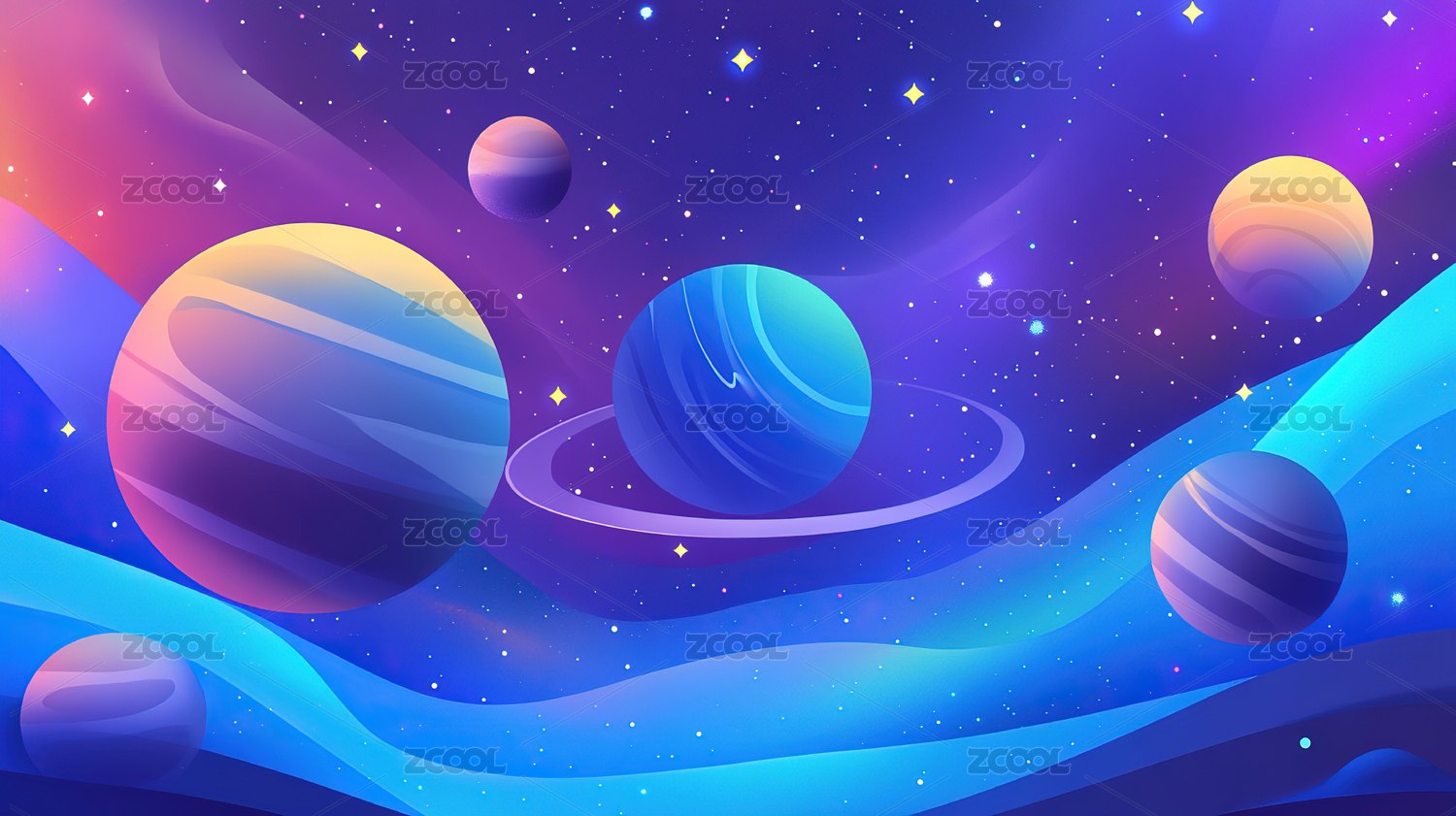 行星宇宙漩涡星球星空未来科技概念插画背景