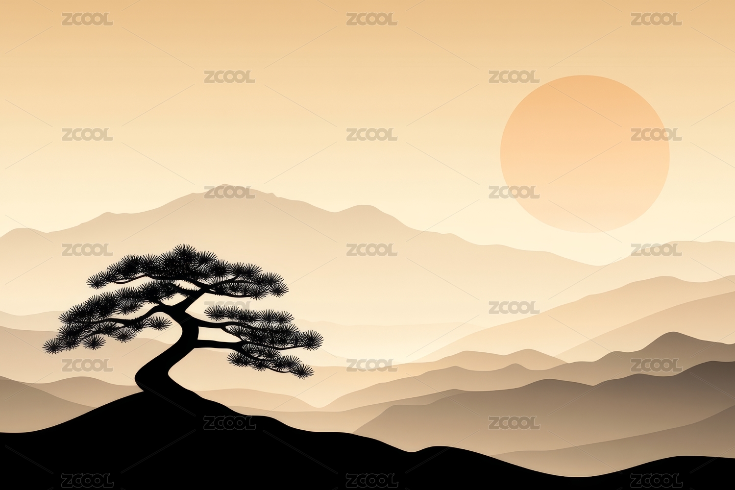 青山和松树的古风背景元素