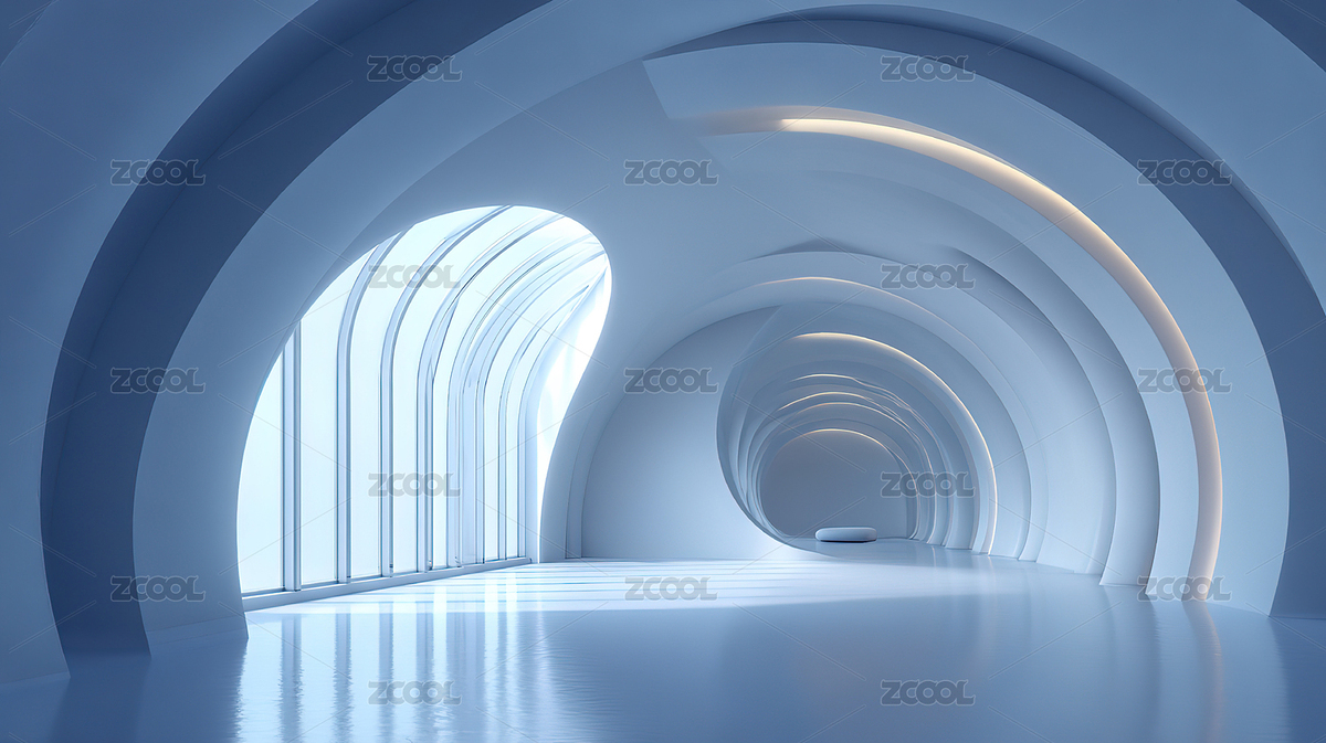 白色,蓝色,简洁,现代,空间,设计,光影,结构,未来,空旷