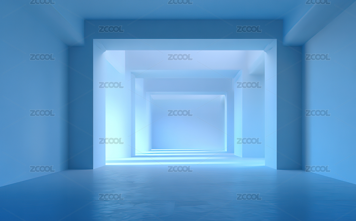 蓝色,简洁,现代,几何,空间,光影,科技感,抽象,氛围,空旷