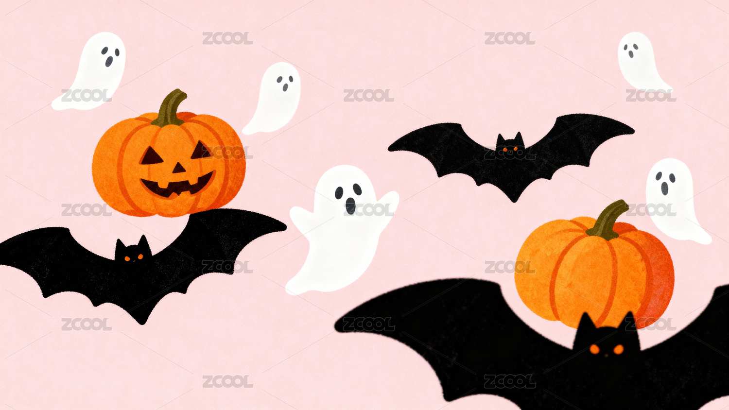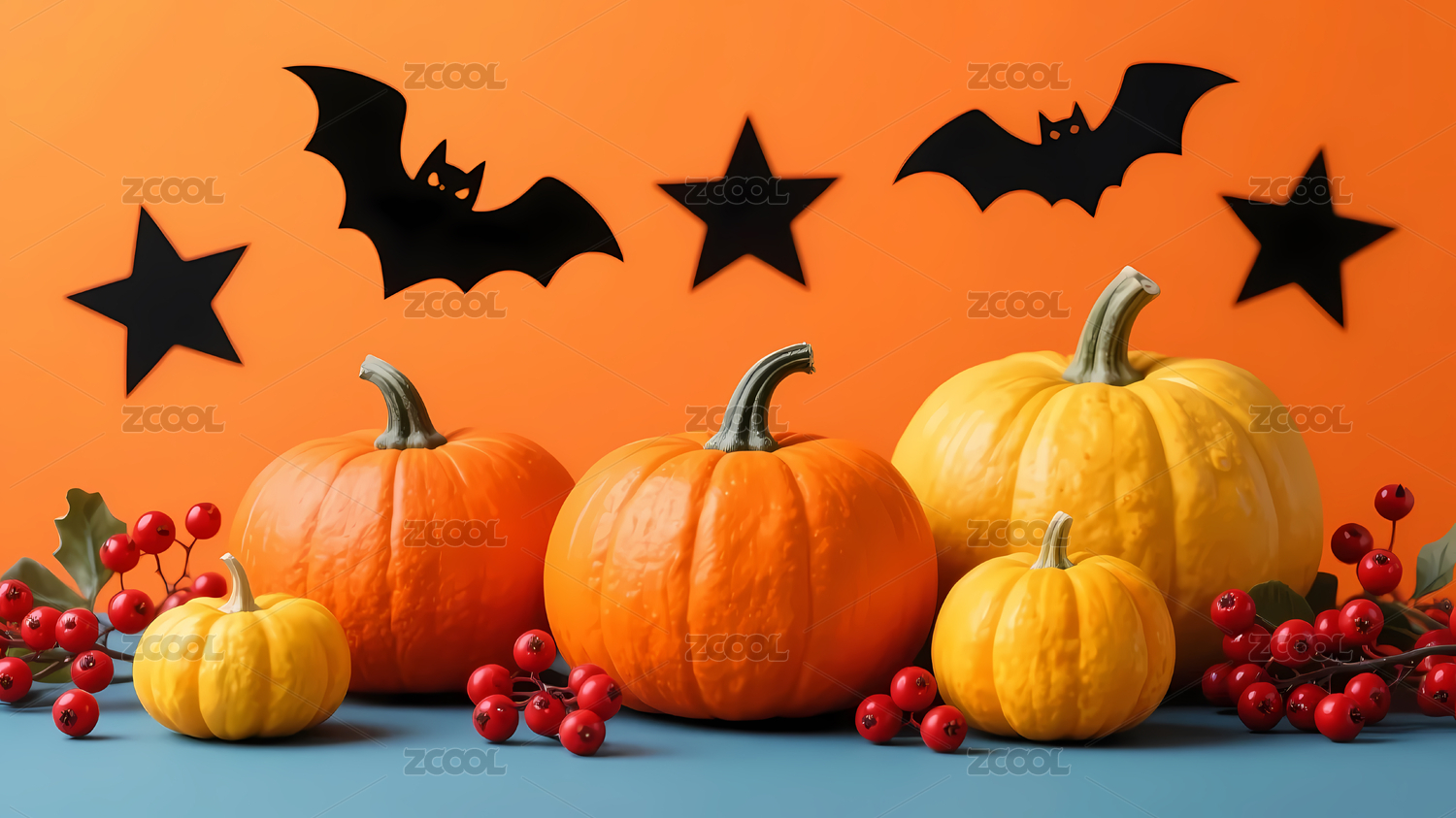万圣节南瓜灯与蝙蝠和秋叶的节日装饰