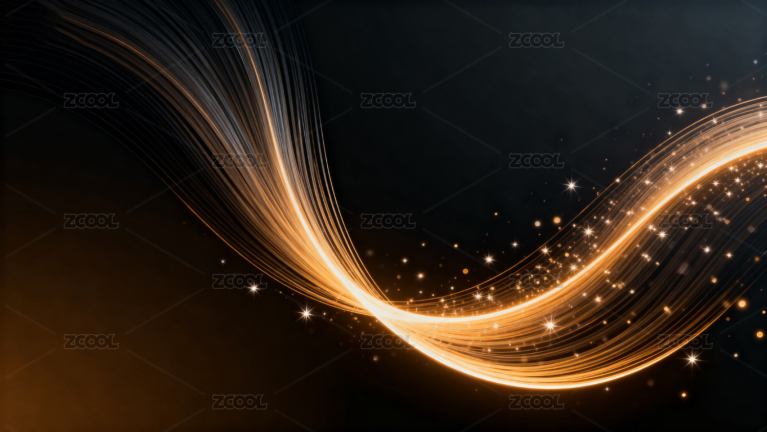 金色光带与星光交织的抽象背景