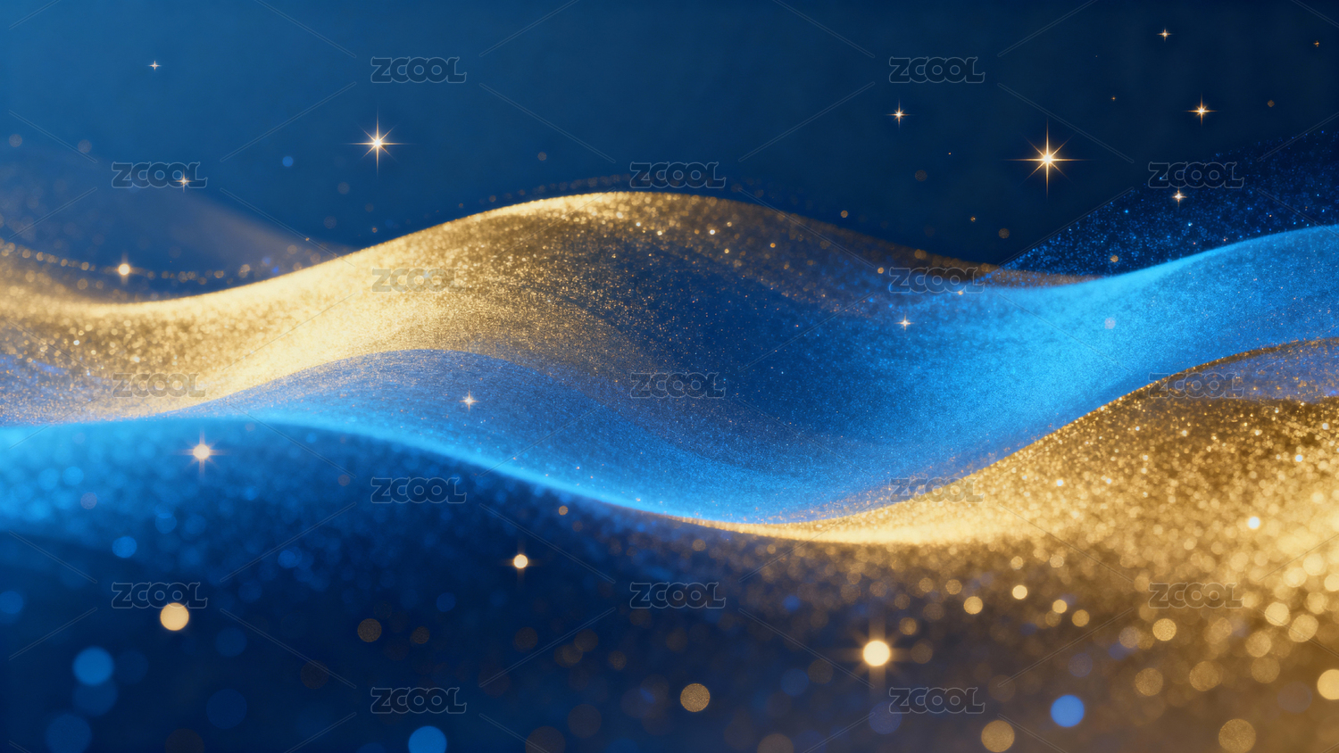 蓝金波浪星光闪耀梦幻背景