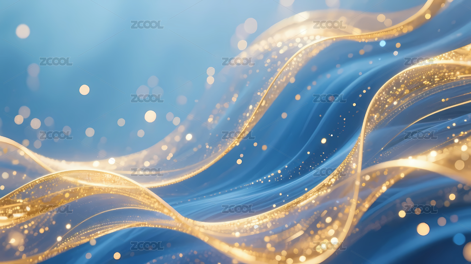 蓝金波浪光影闪耀背景