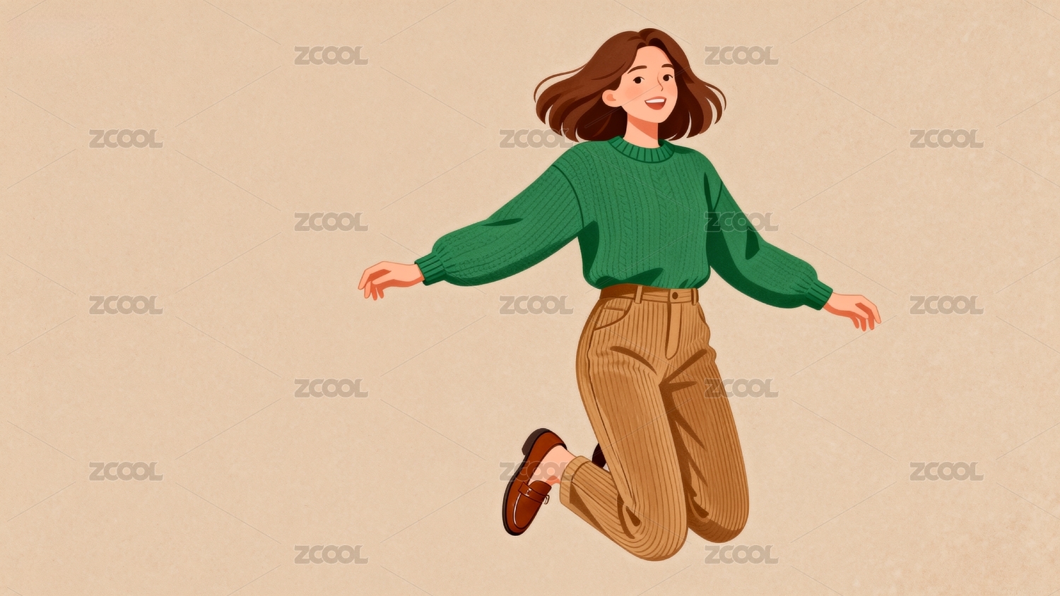 女子,绿色,毛衣,裤子,跑步,笑容,长发,手臂,腿部,背景