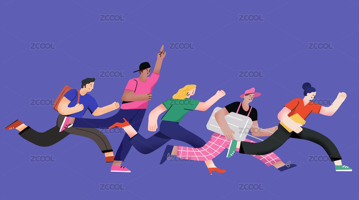 彩色卡通跑步人群画面