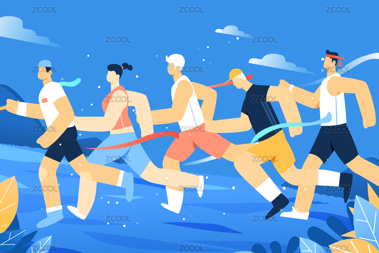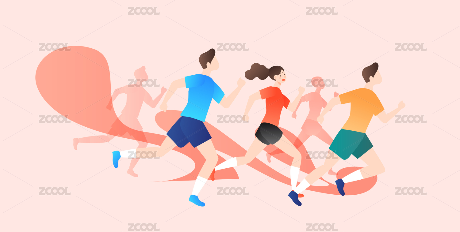人物跑步比赛手绘插画