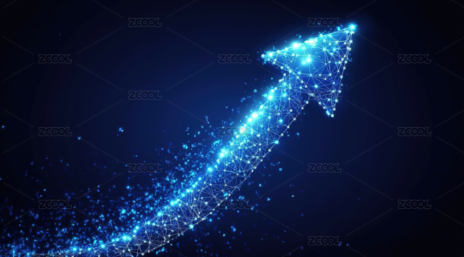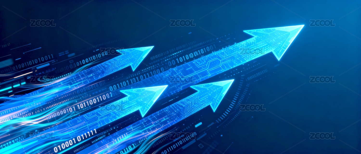 蓝色箭头光效象征上升趋势