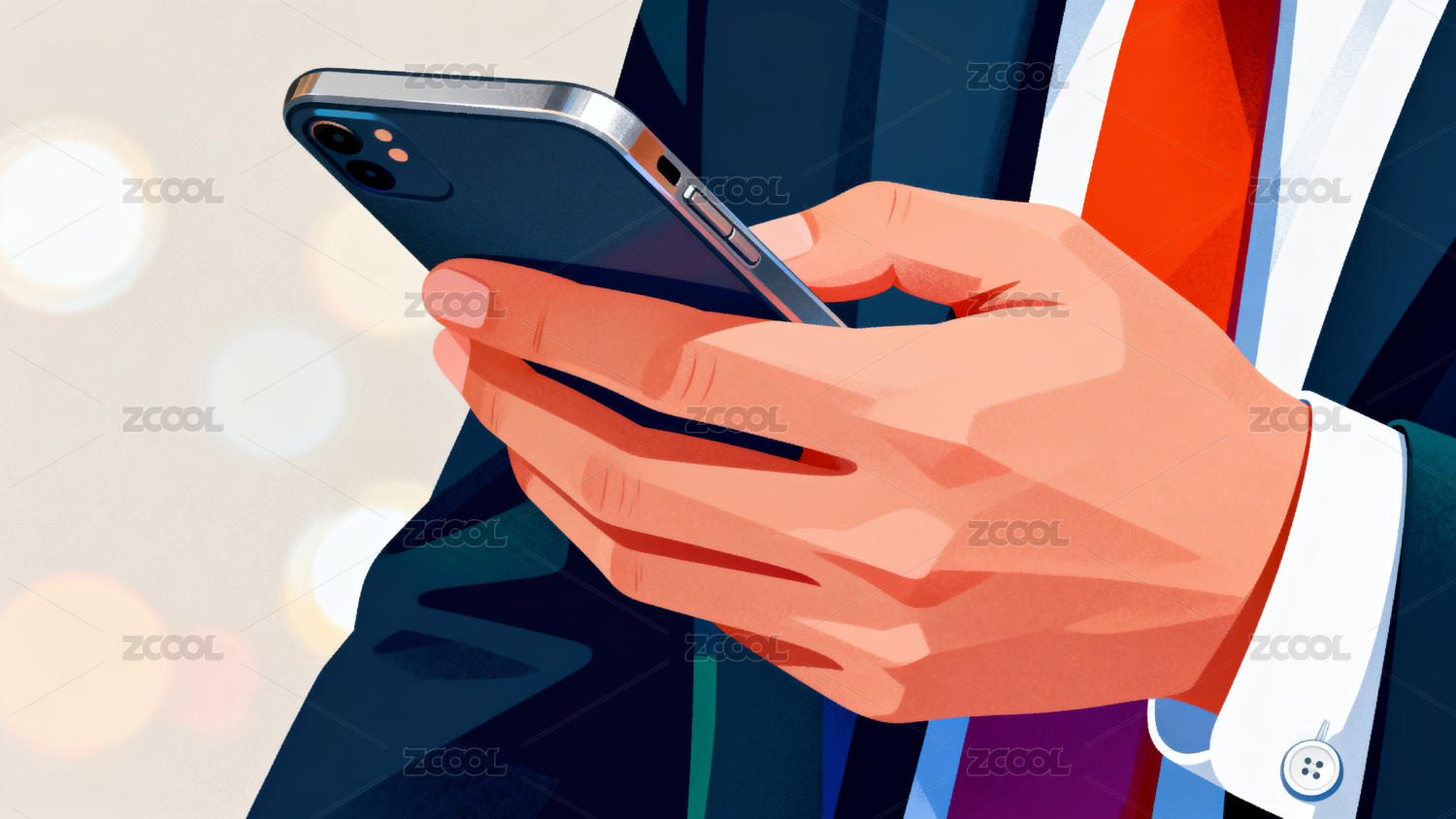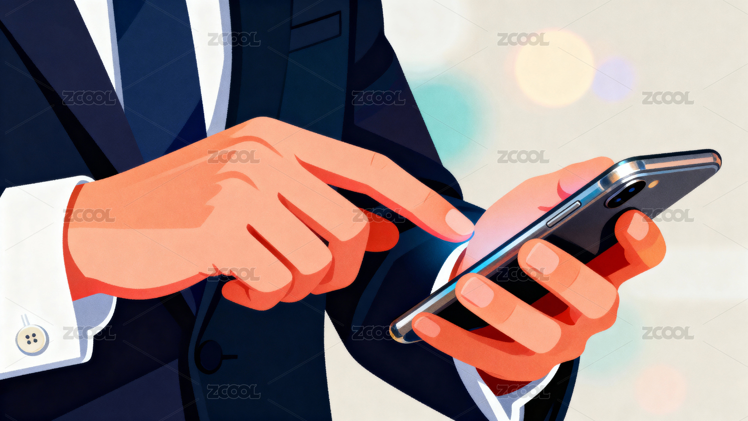 商务人士手持手机专注操作