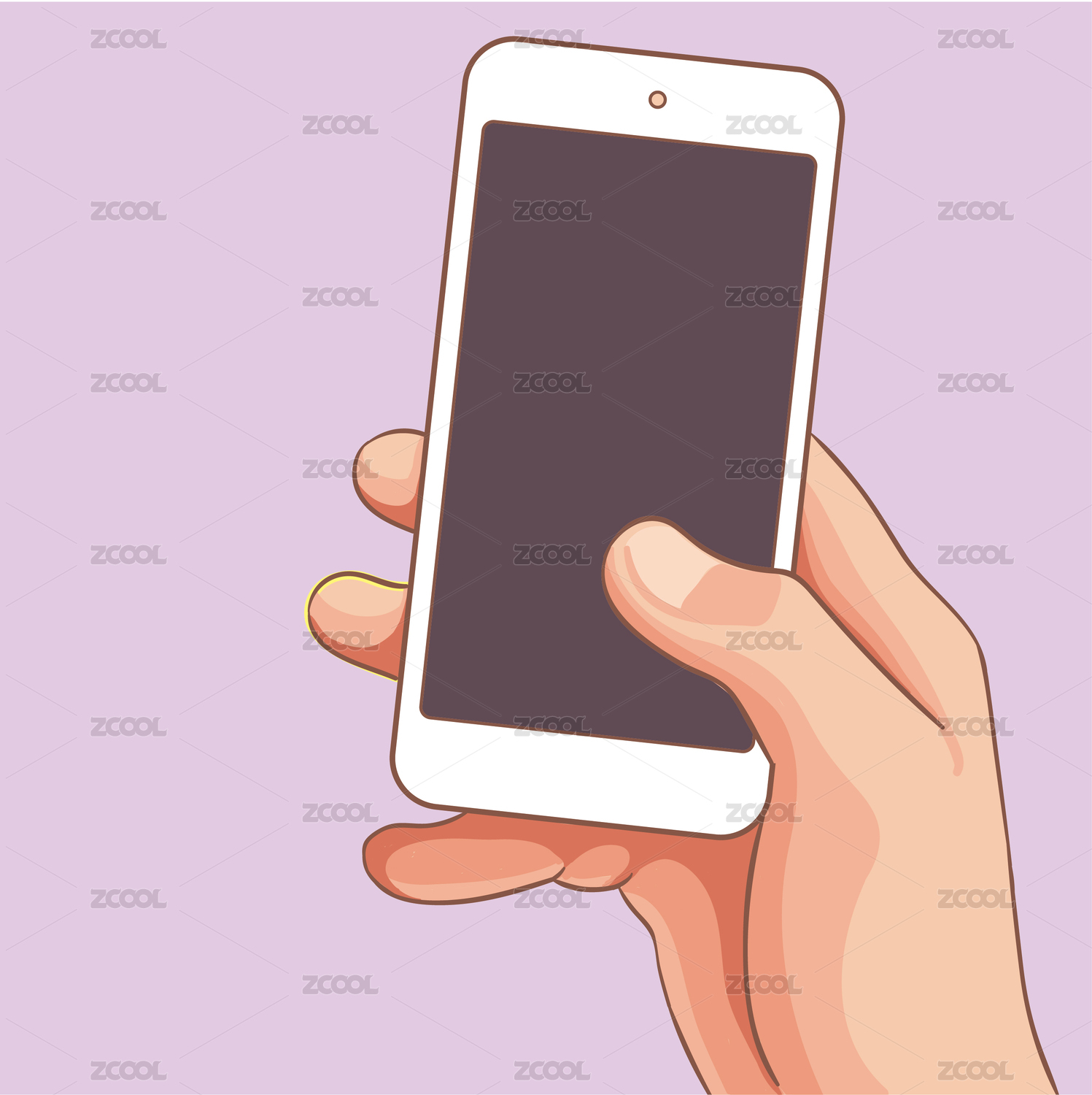 手持智能手机的插画,简约线条风格