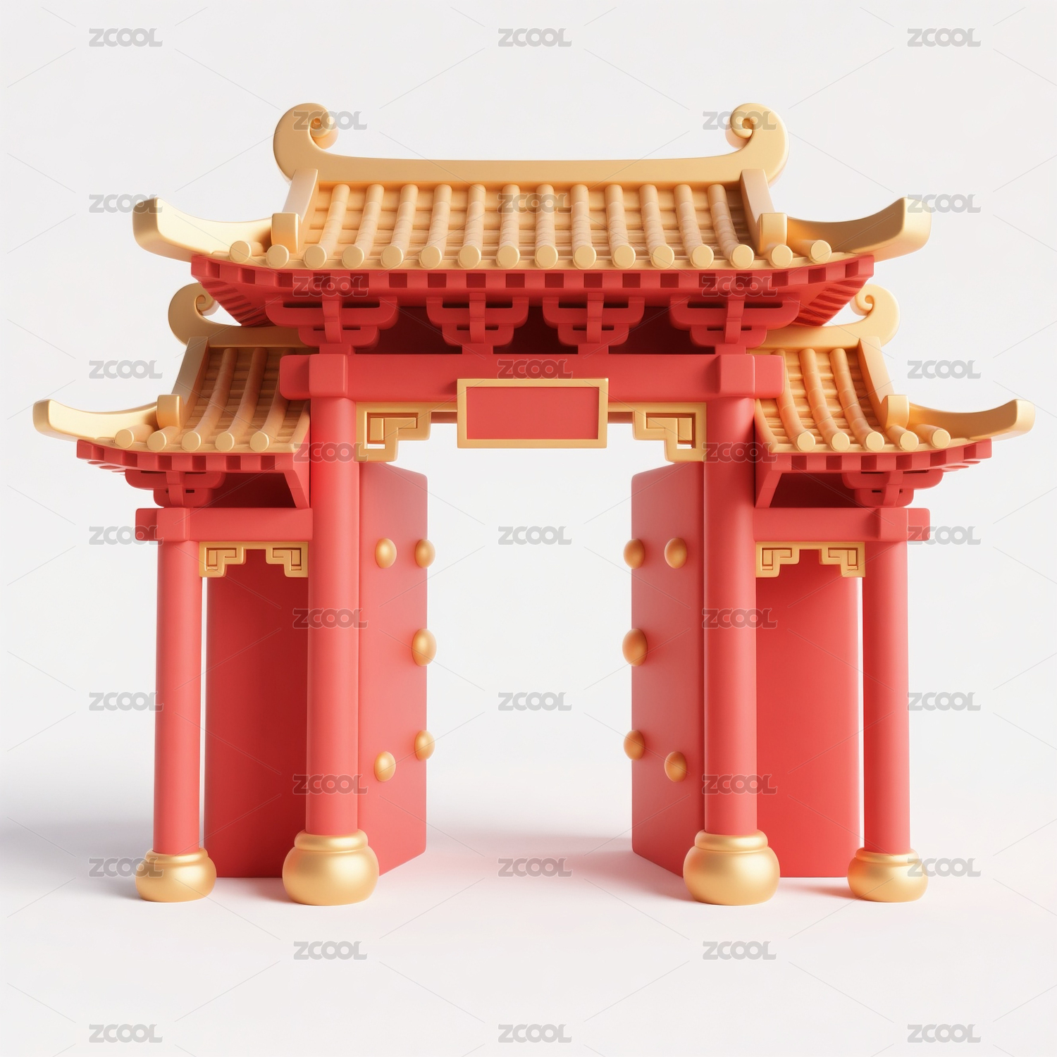 古建筑,亭台楼阁,牌坊,背景,三维,场景,古风,红色,新年,节日