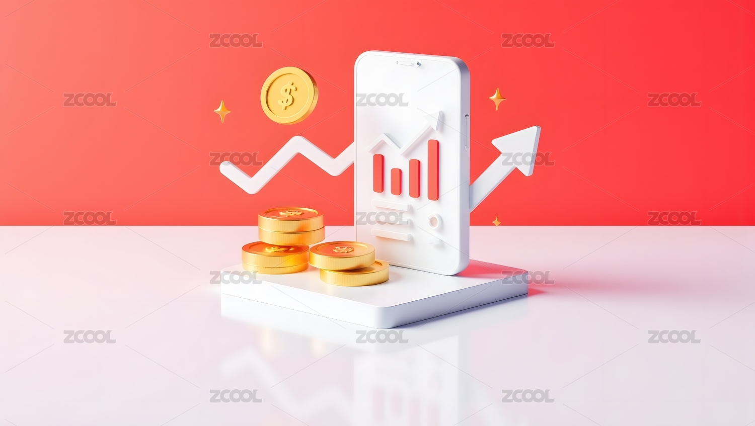 手机金融增长图表与金币