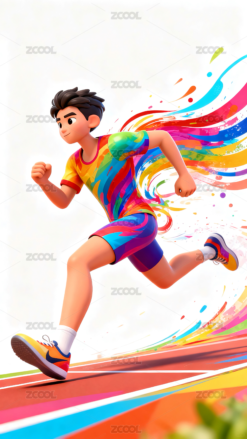 卡通,活力,锻炼,跑步,彩带,节日,庆祝,运动会,插画,3D