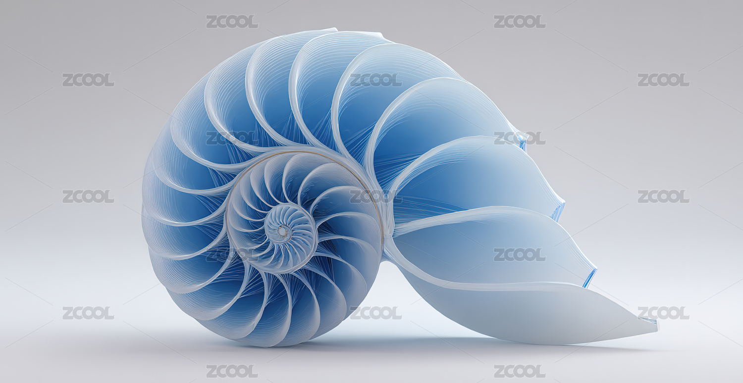 优雅的鹦鹉螺黄金比例螺旋剖面