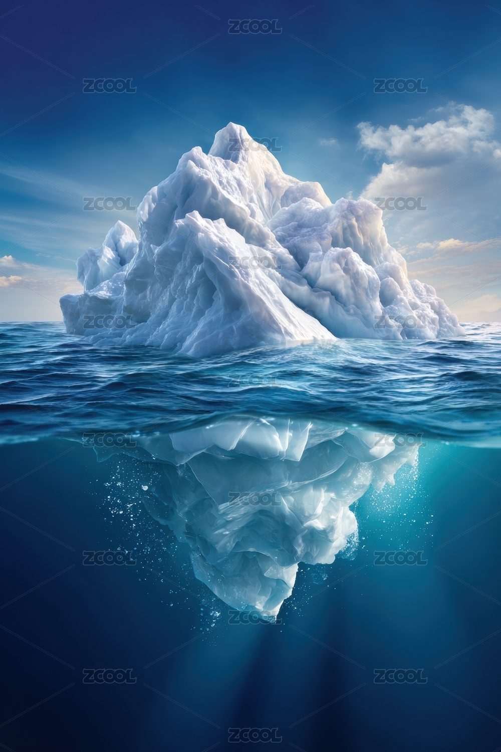 蓝色海洋中露出水下部分的壮丽冰山