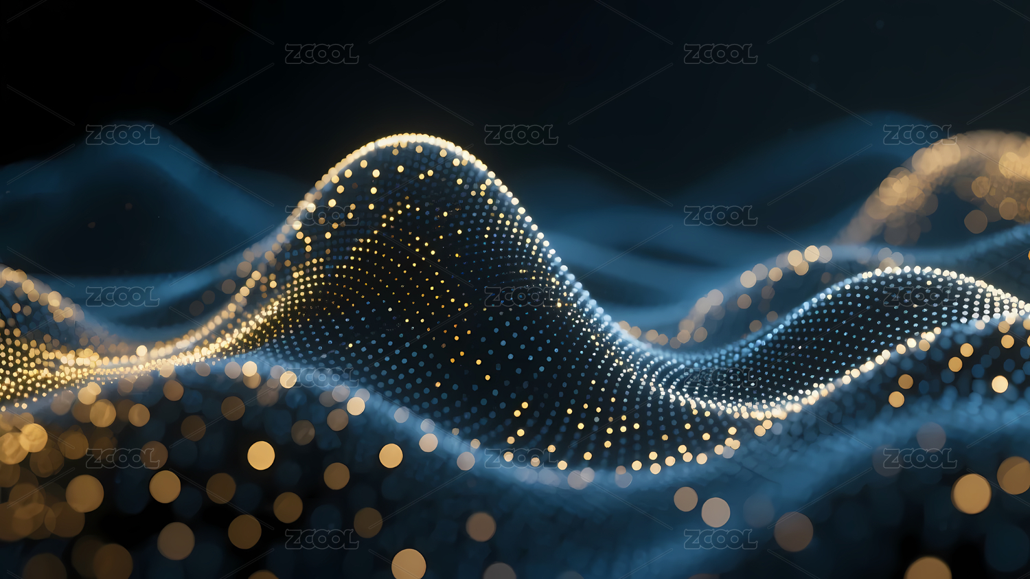 深蓝波浪与金色光点