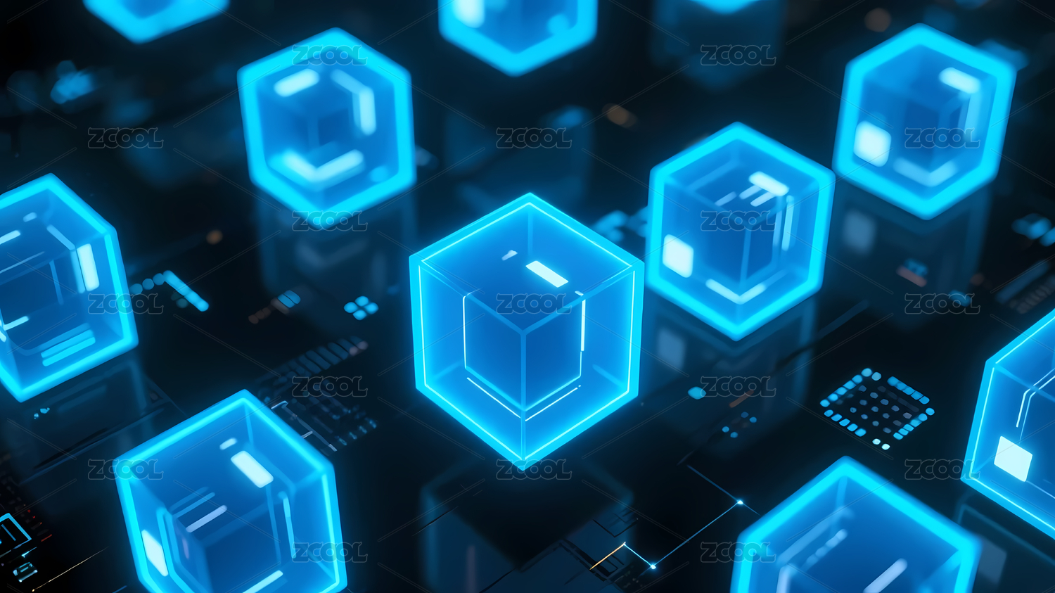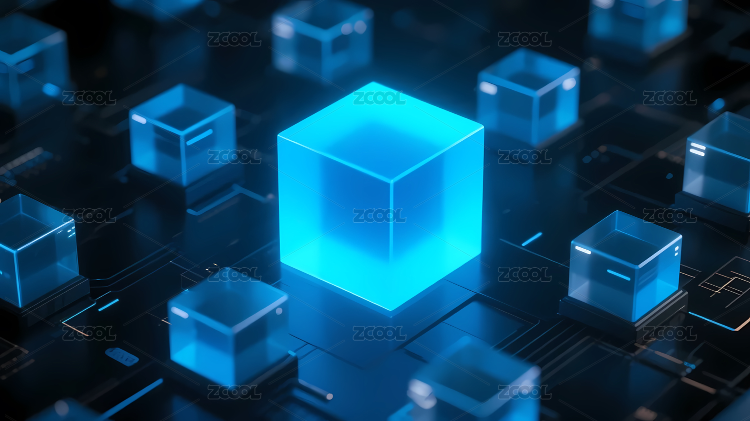 未来,蓝色,立方体,白色,发光,科技,反射,深色,环绕,立体