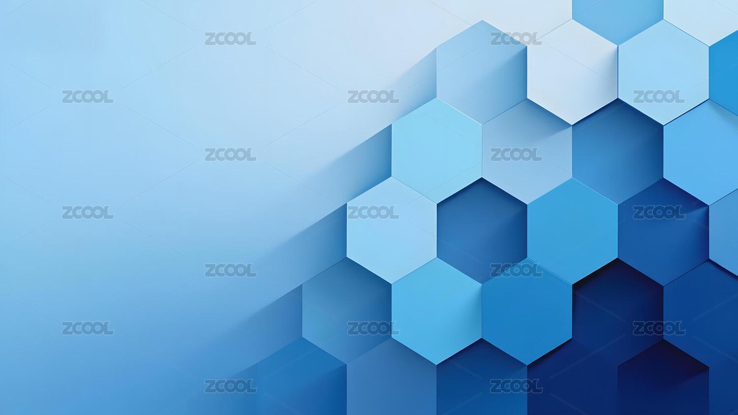 多蓝色渐变六边形组合