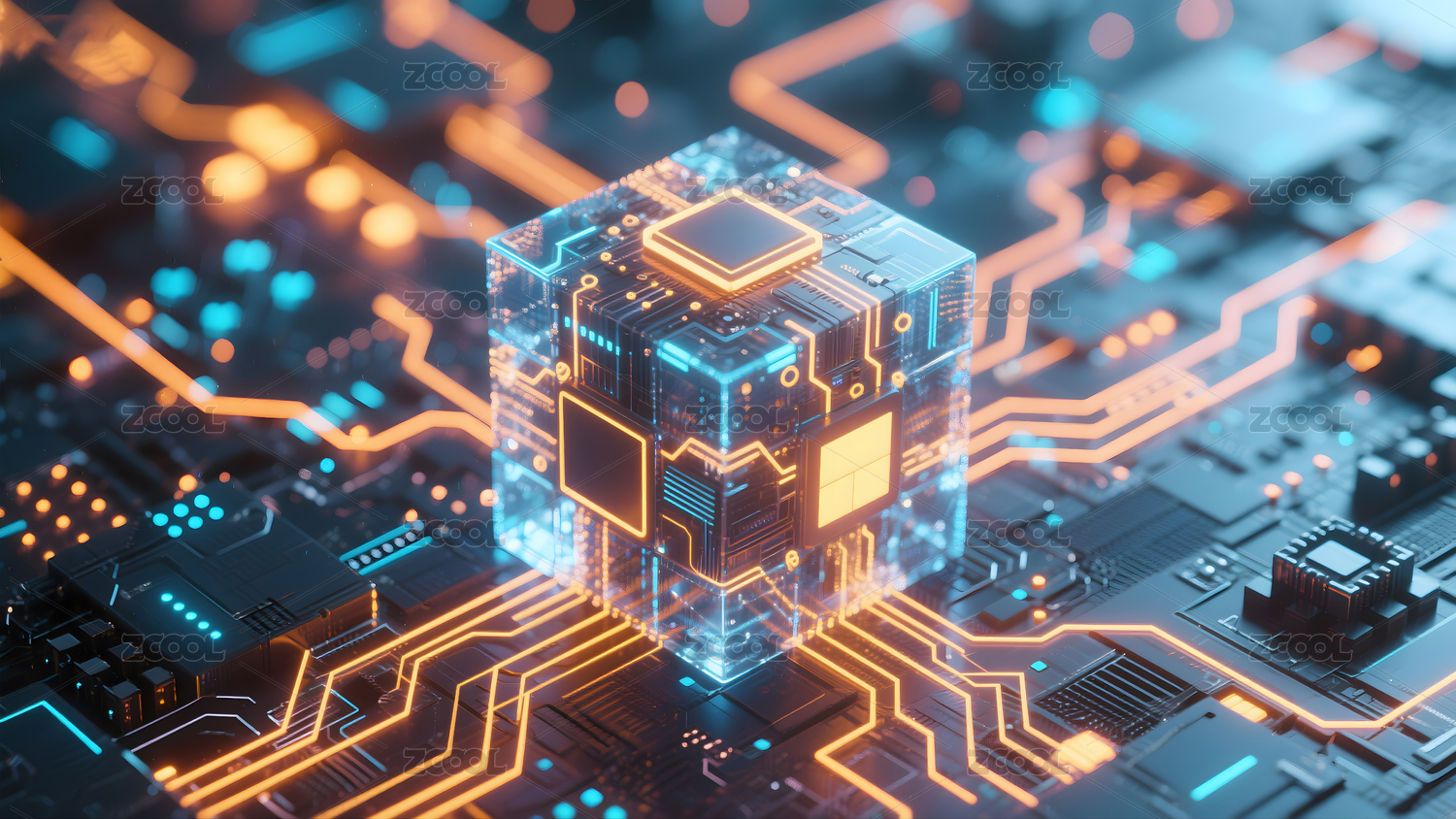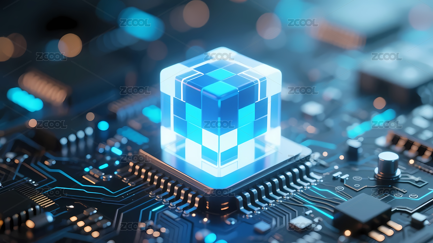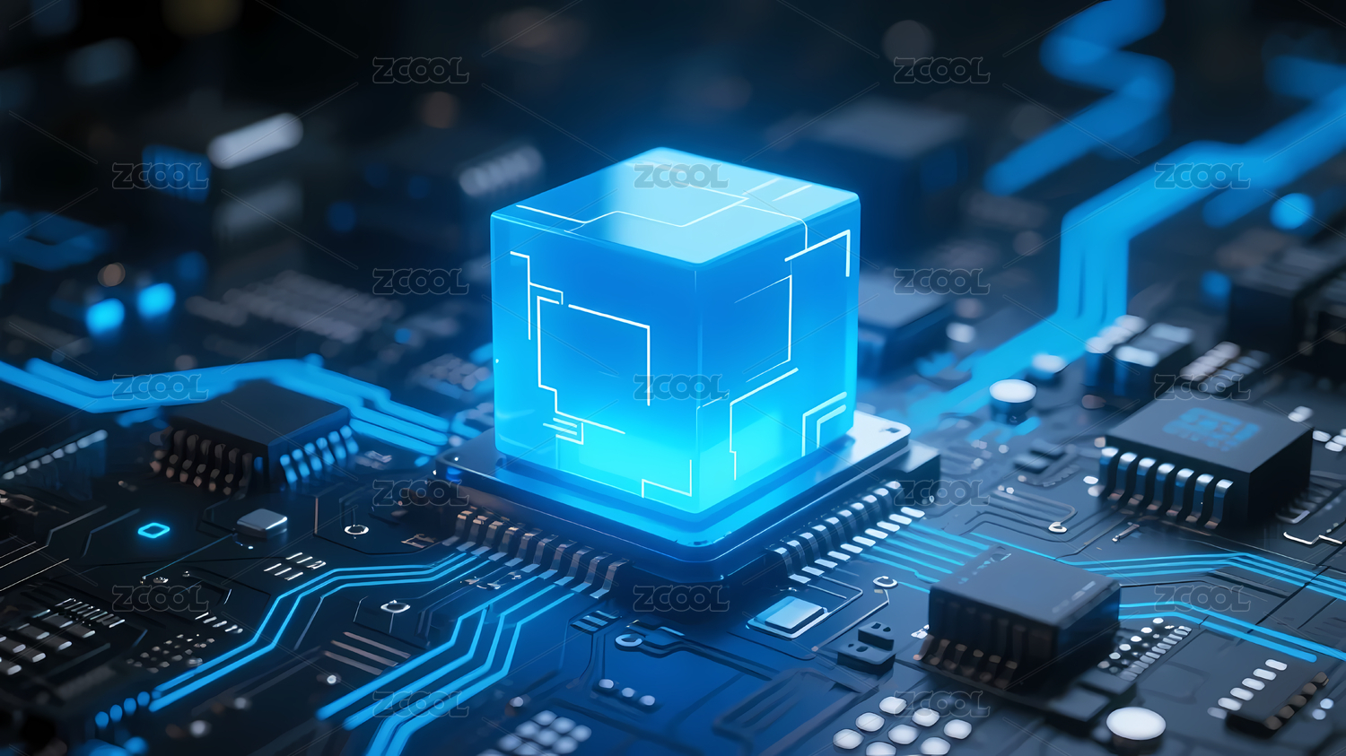 蓝色,科技,线条,深色,芯片,精密,电子,发光,电路,复杂