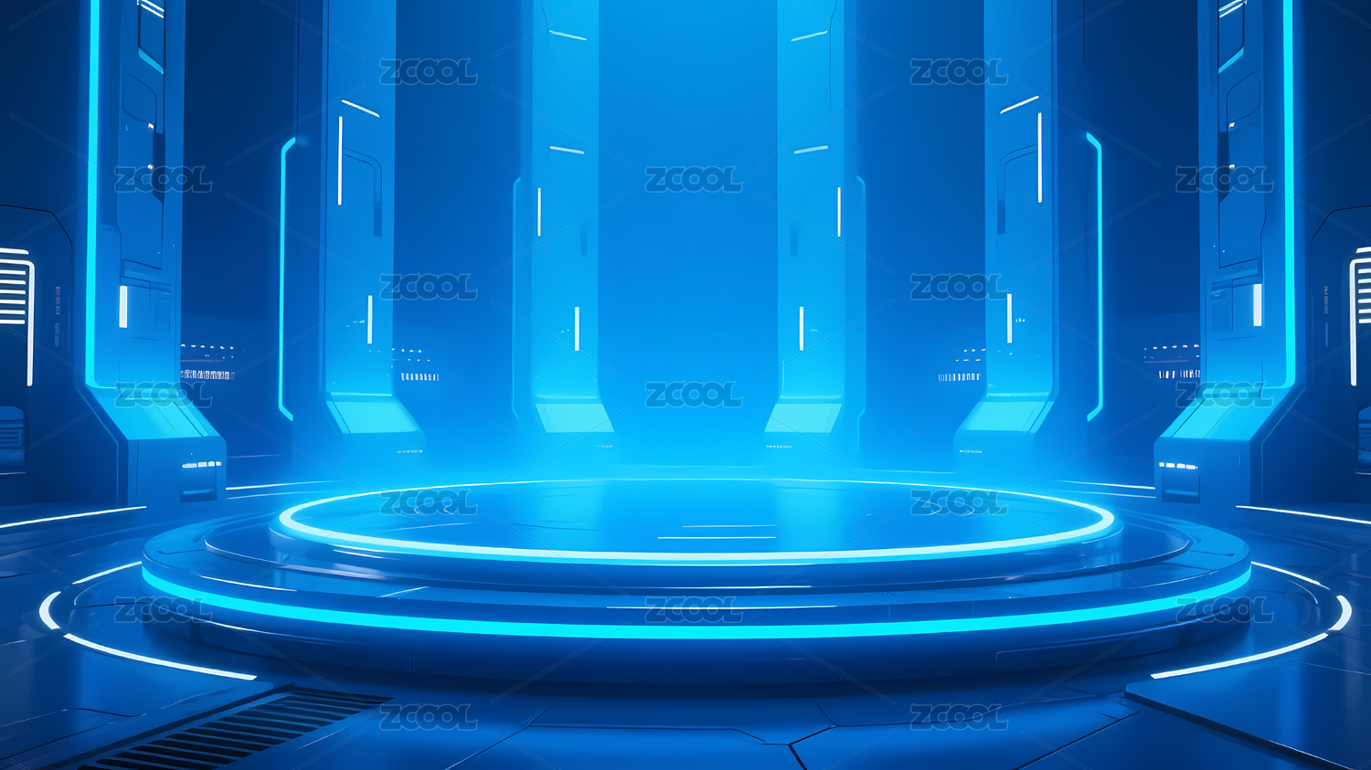 神秘,蓝色,科技,光芒,星空,圆形,未来,平台,光柱,高耸