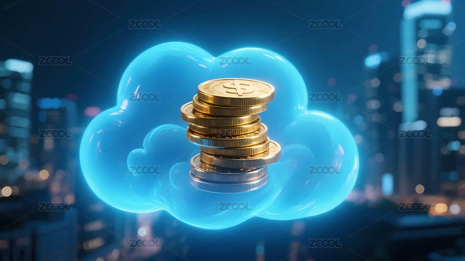 夜晚城市金币蓝云图案