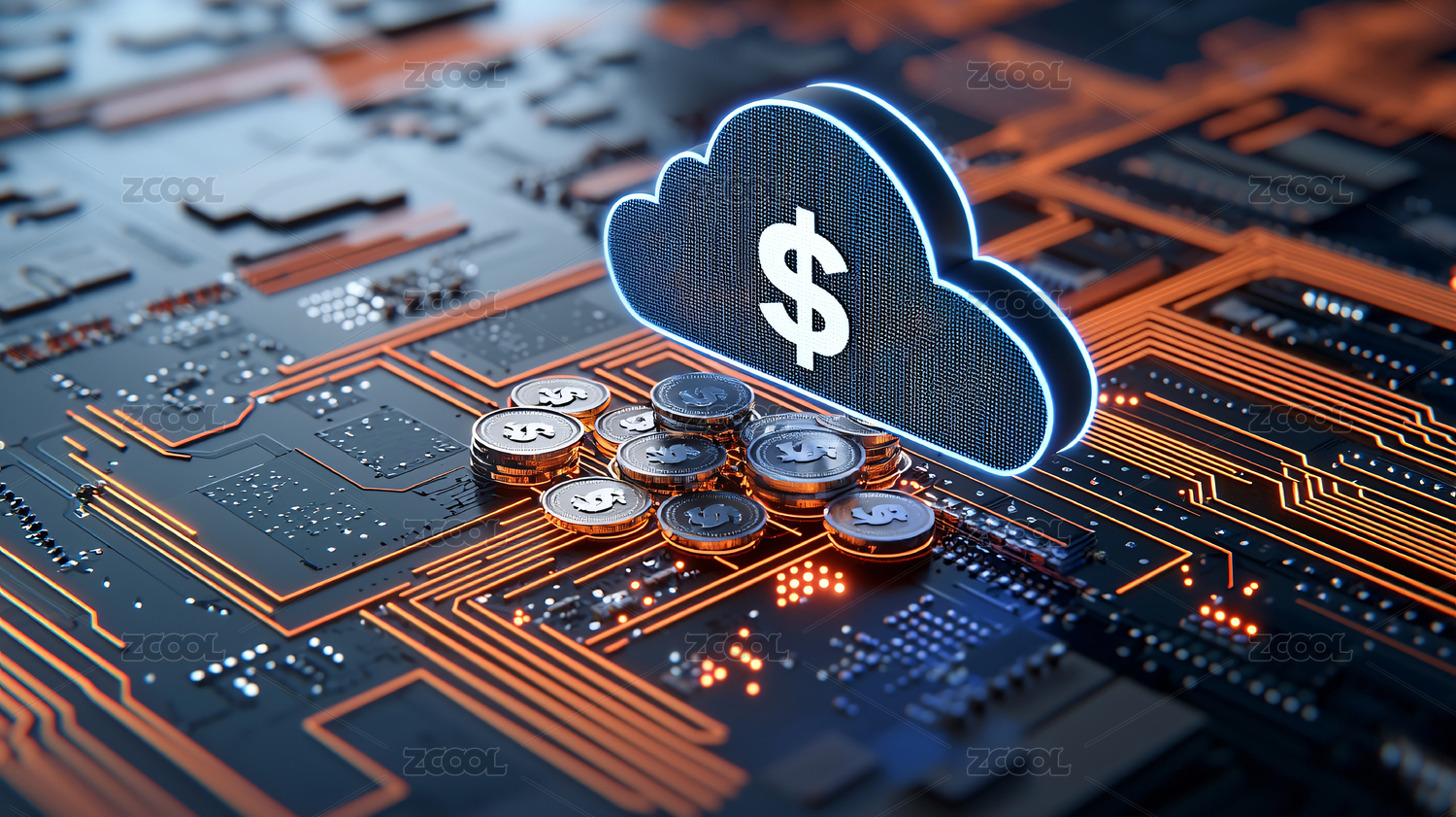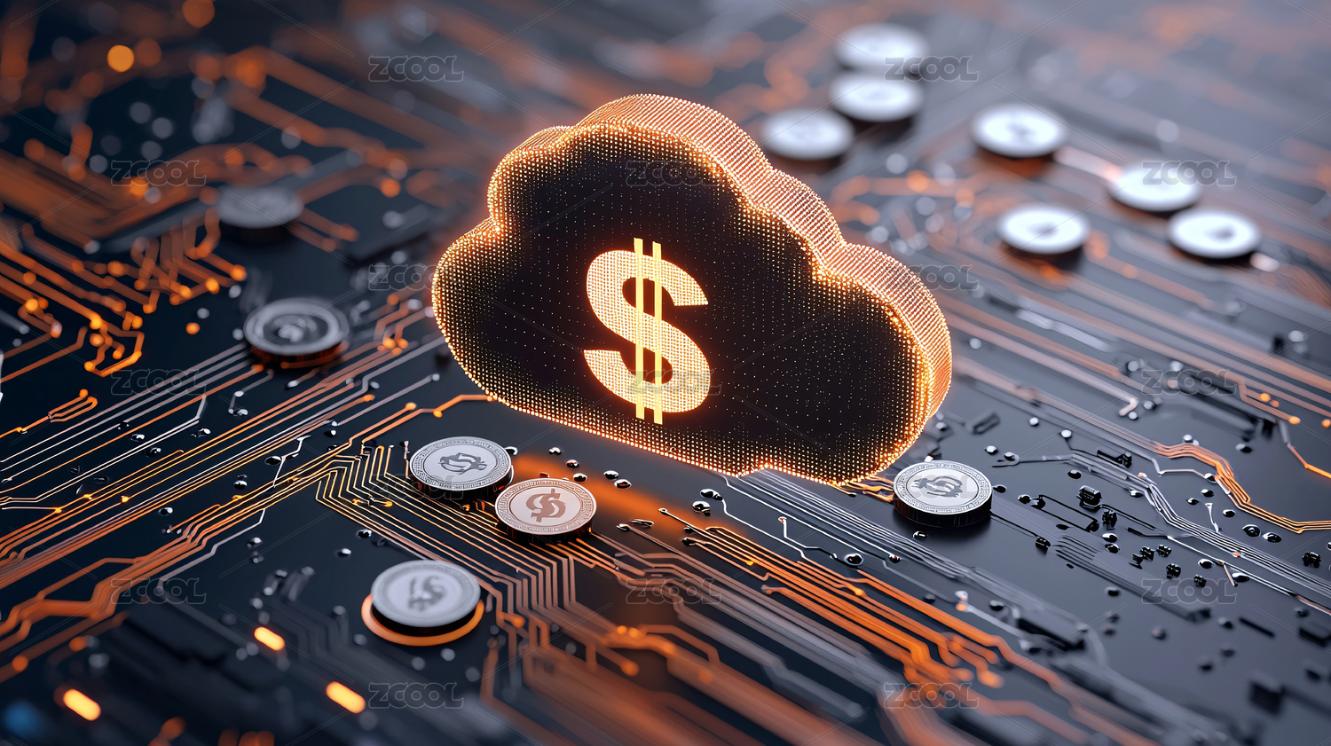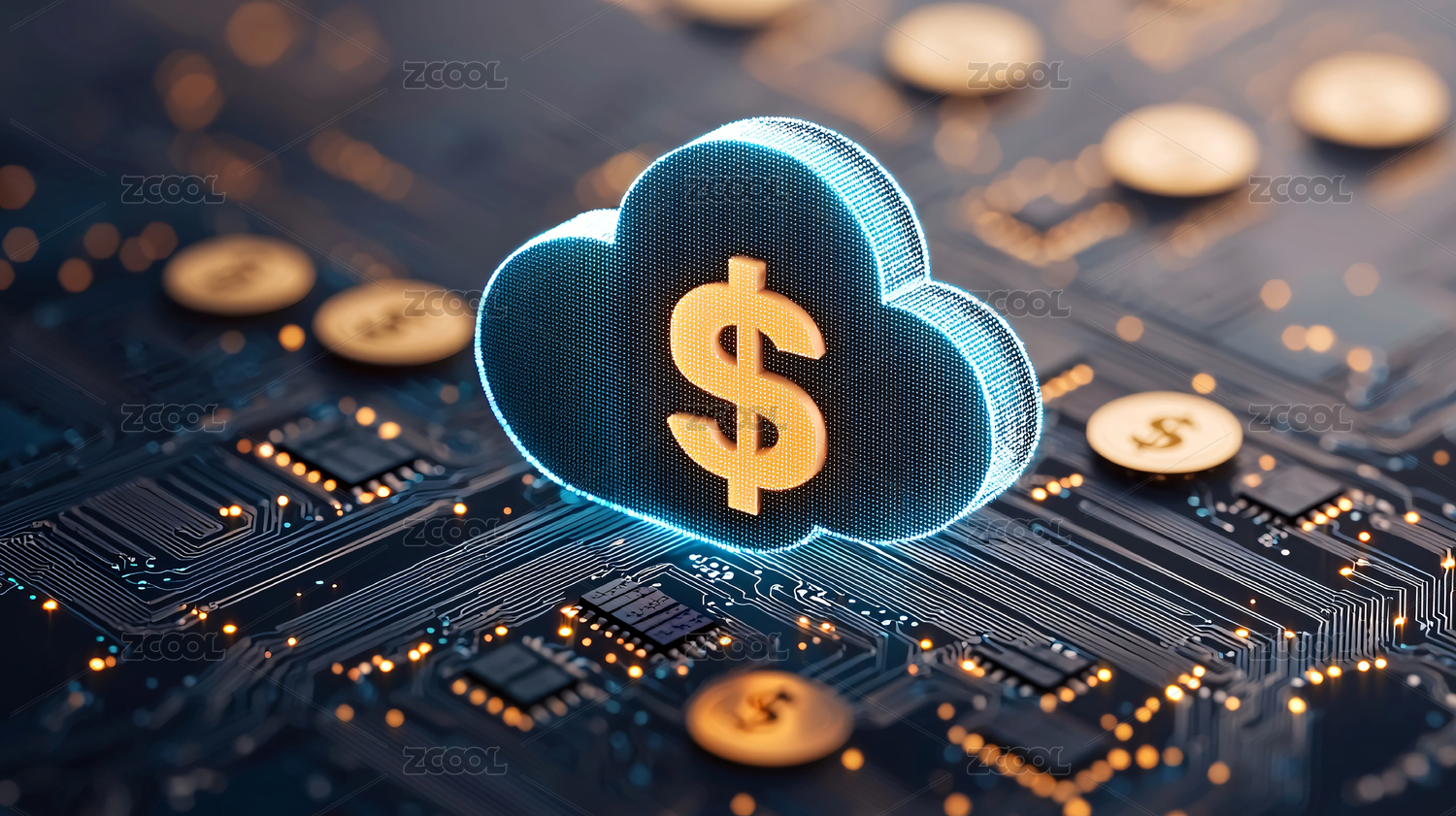 电路板背景上有美元符号