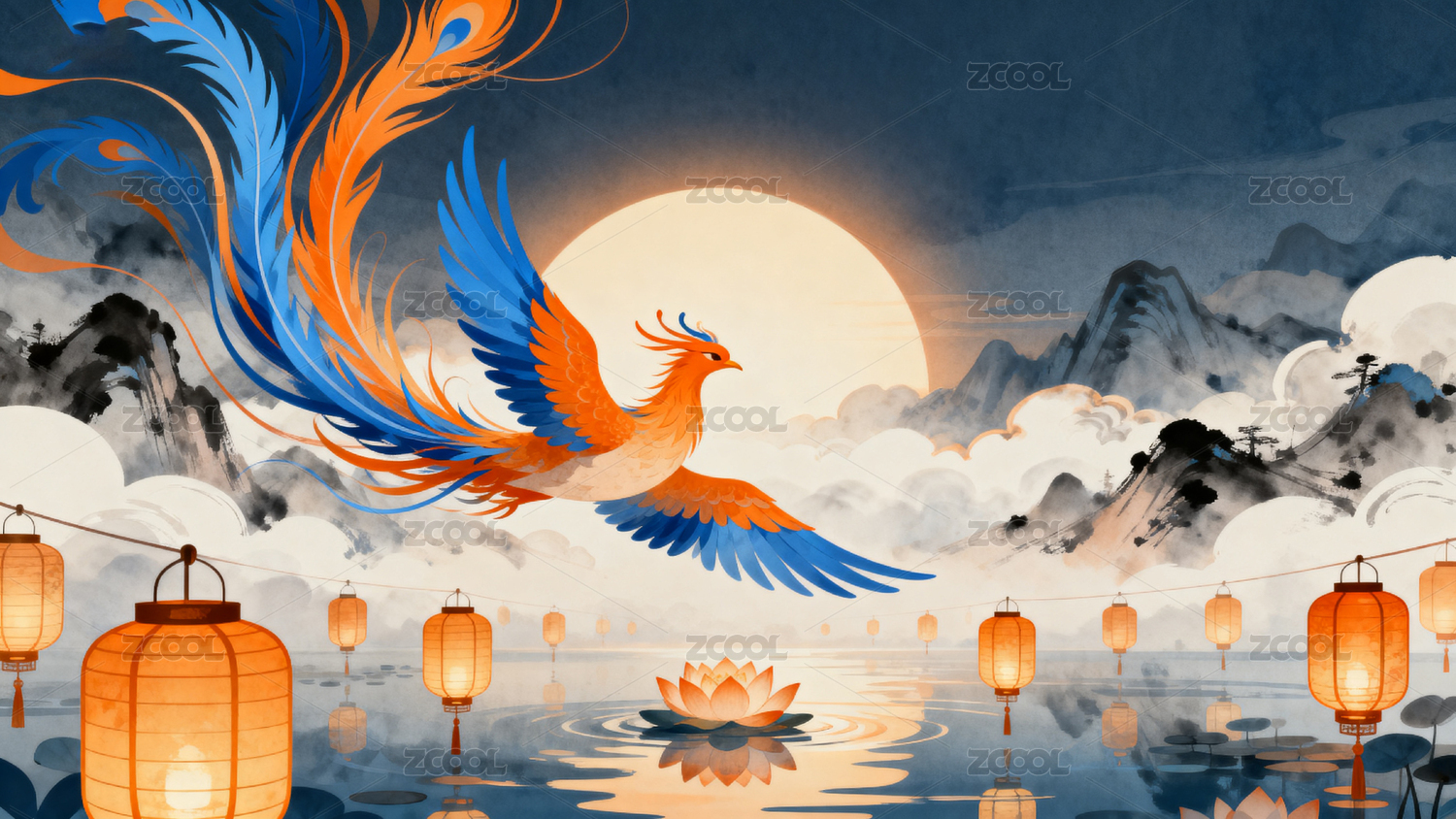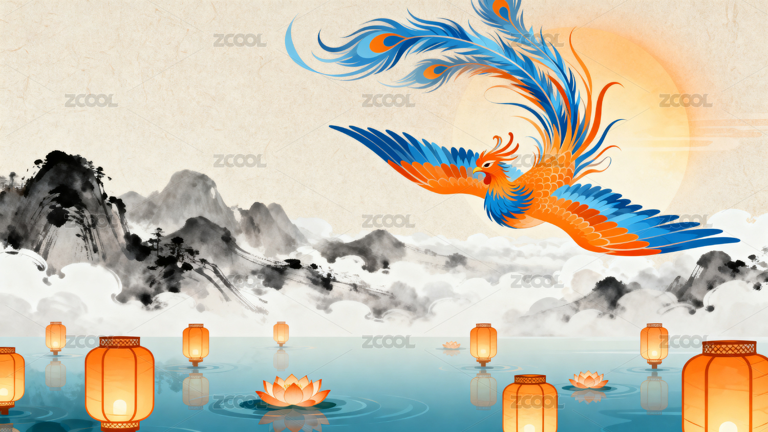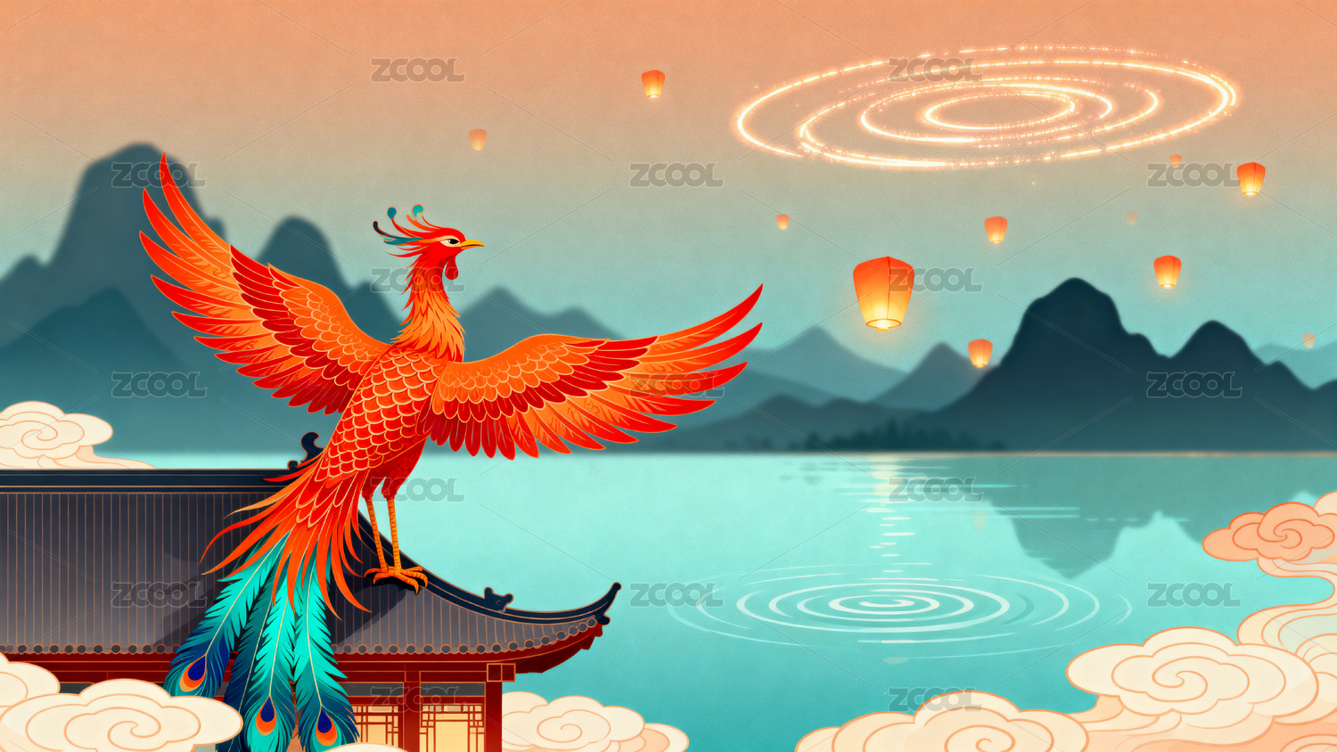 装饰,色彩,细节,灯笼,传统,建筑,神话,蓝色,云朵,宁静