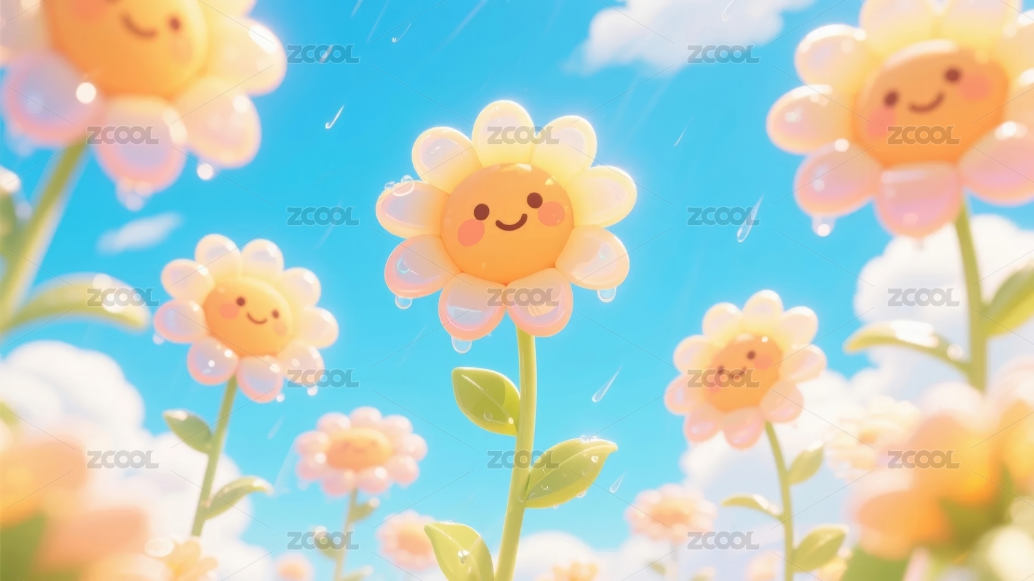 花朵,植物,橙色,自然,黄色,清新,粉色,笑脸,蓝天,白云