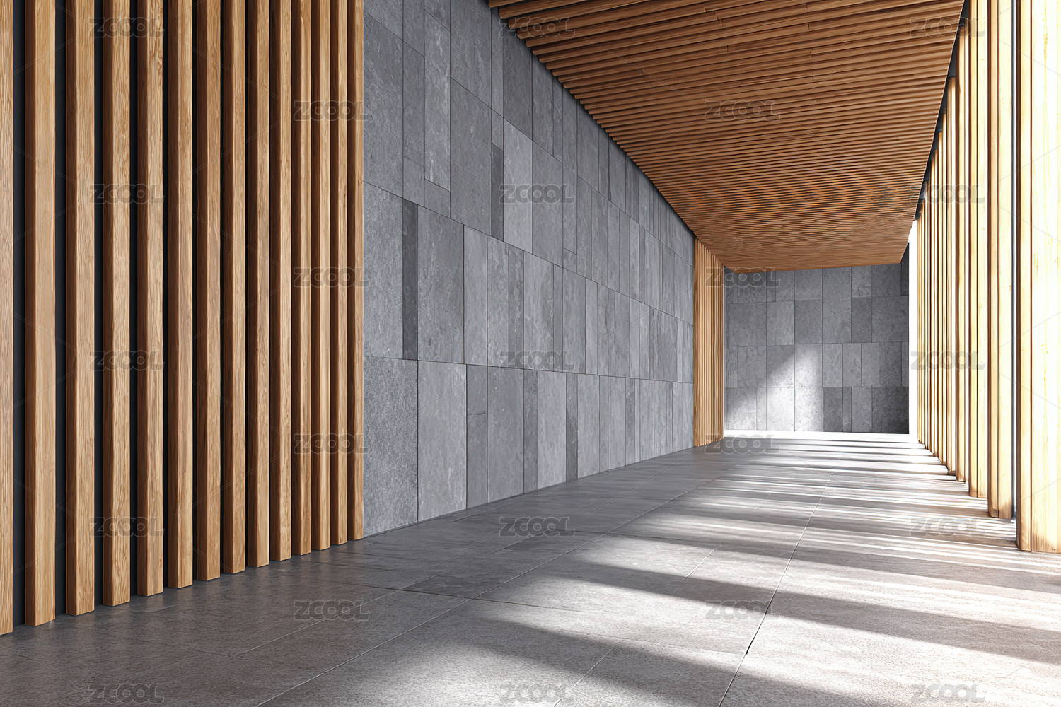 木质条纹走廊室内空间