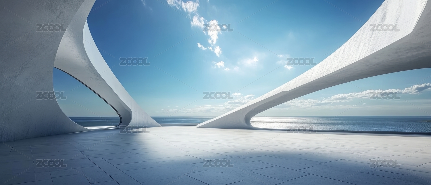 建筑,曲线,白色,现代,结构,海洋,天空,光影,简洁,设计