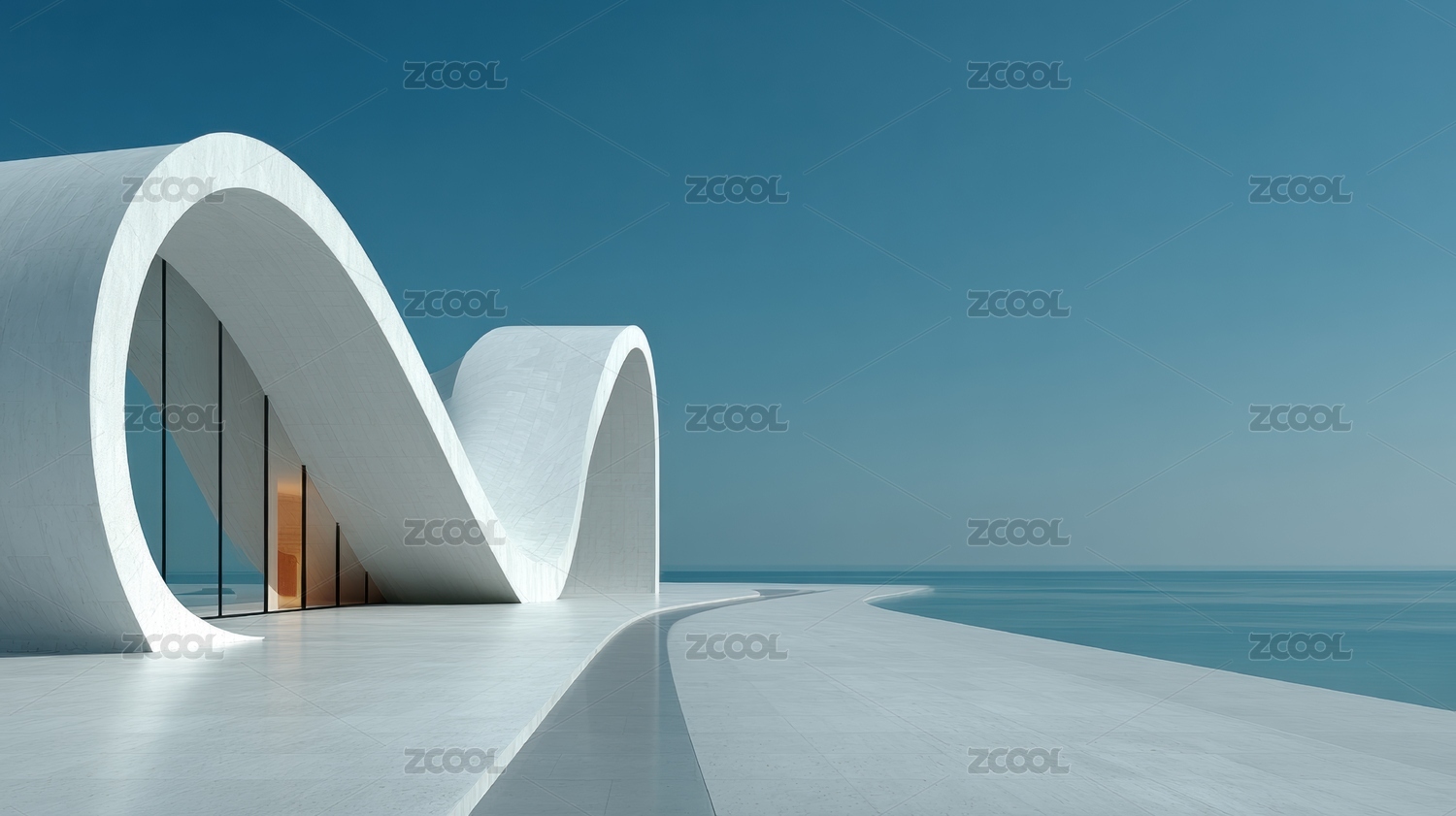 白色曲线建筑与海洋景观