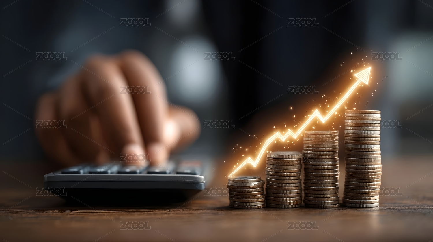 硬币堆叠与增长趋势图