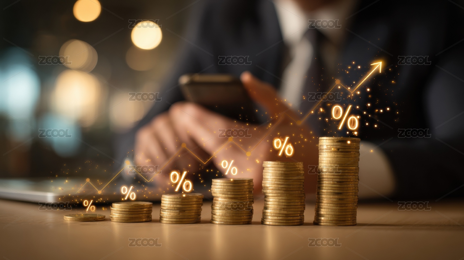 硬币堆叠与百分比符号