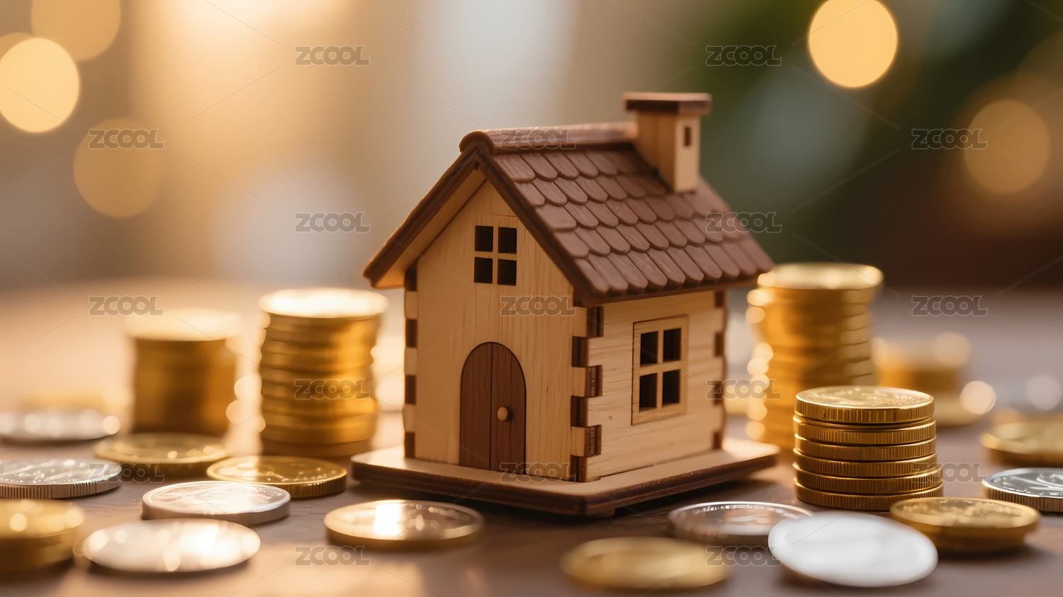 微型房屋与散落硬币前景