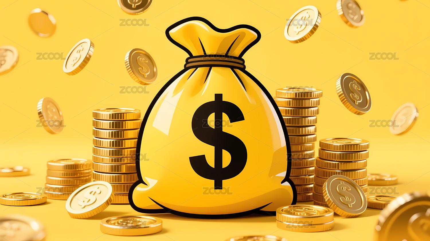 黄色钱袋与漂浮金币