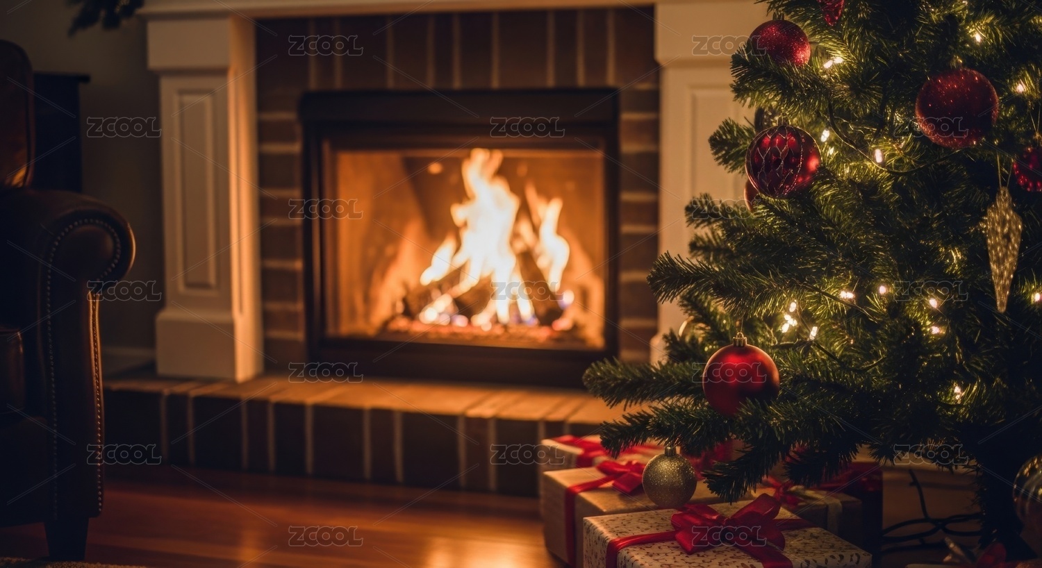 圣诞树与壁炉的温馨场景