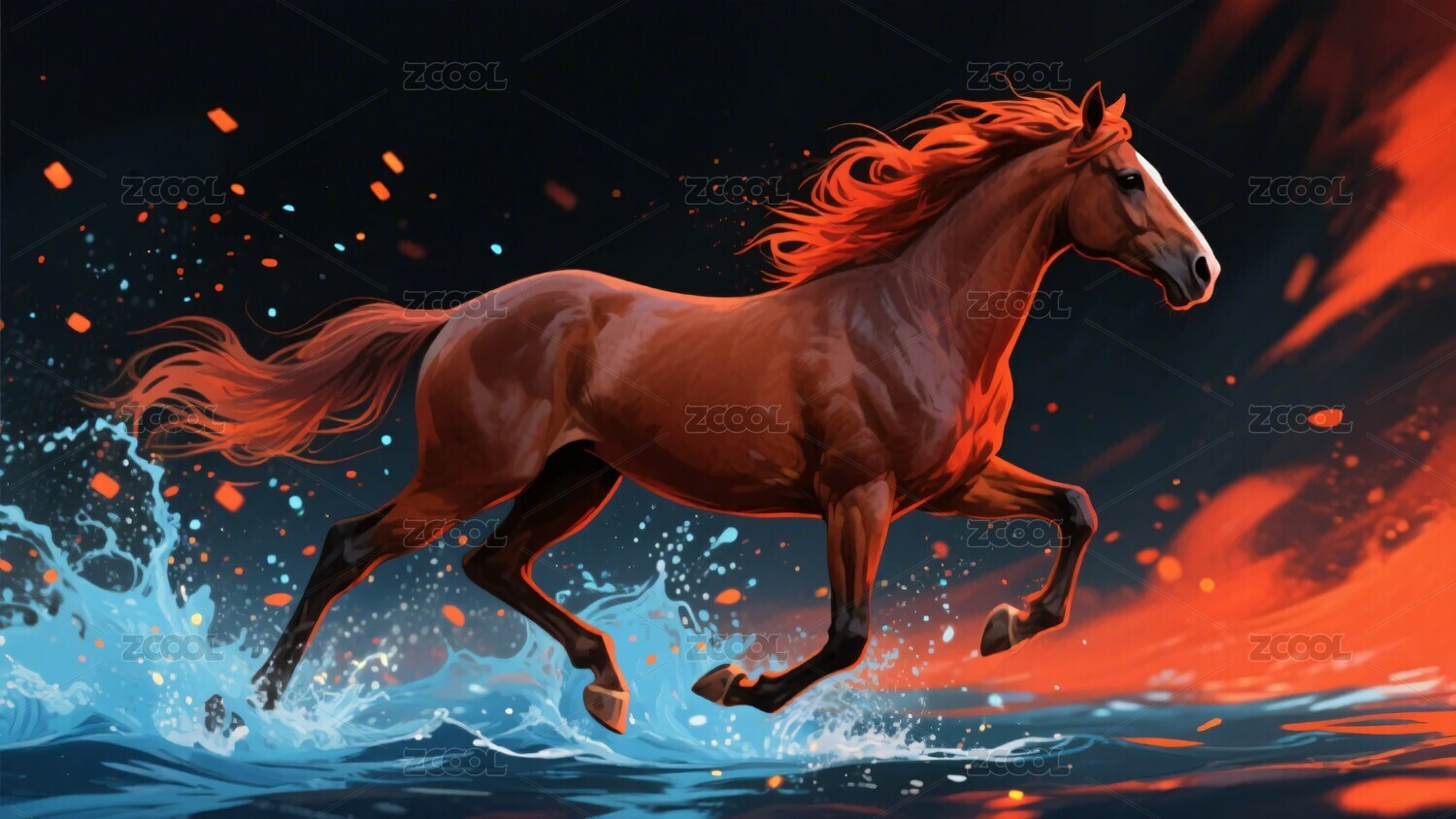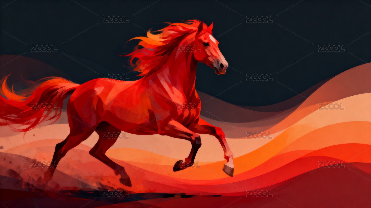 光影,背景,红色,装饰,艺术,色彩,轮廓,动感,抽象,骏马
