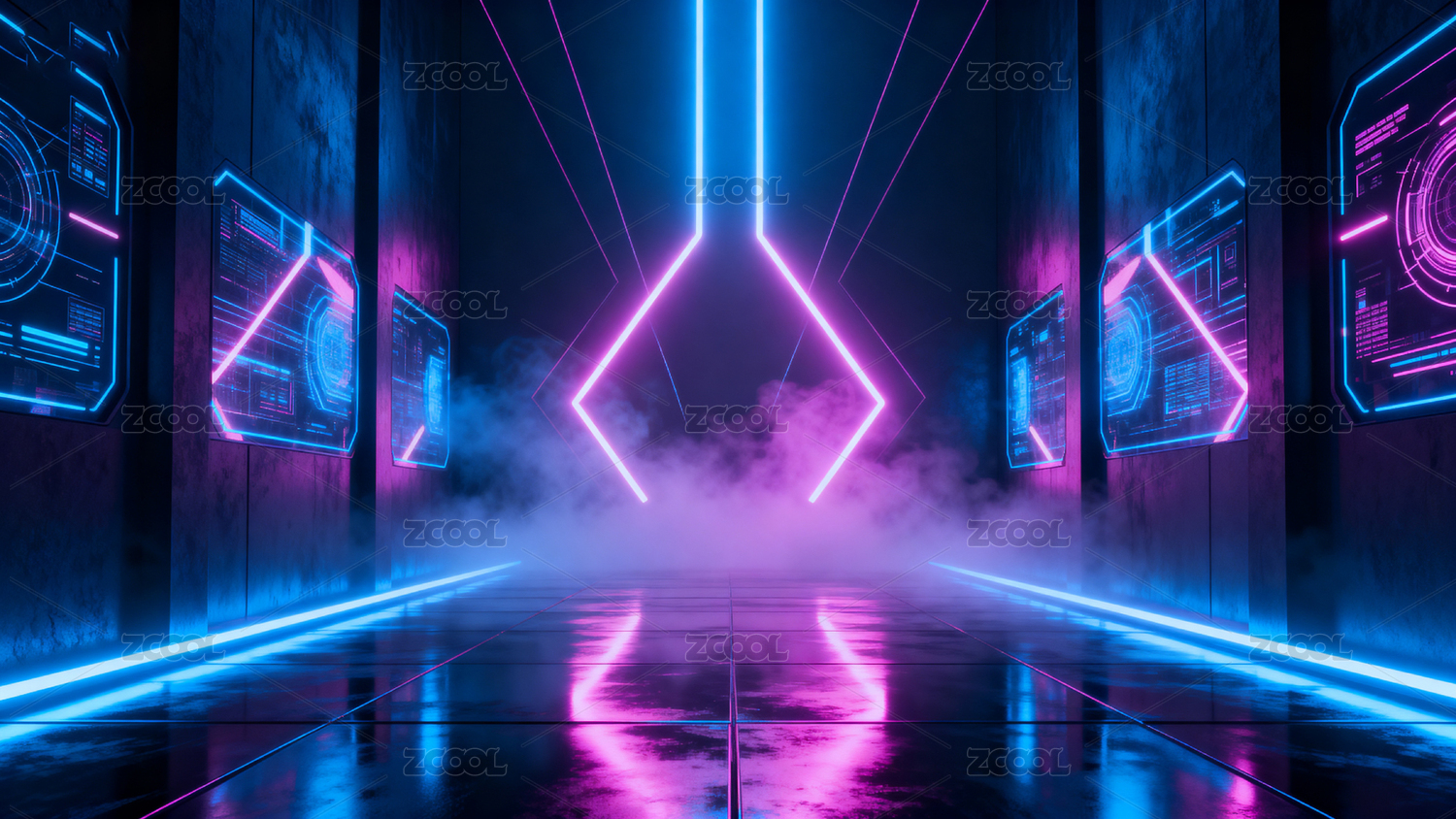 霓虹光效科幻走廊未来感空间