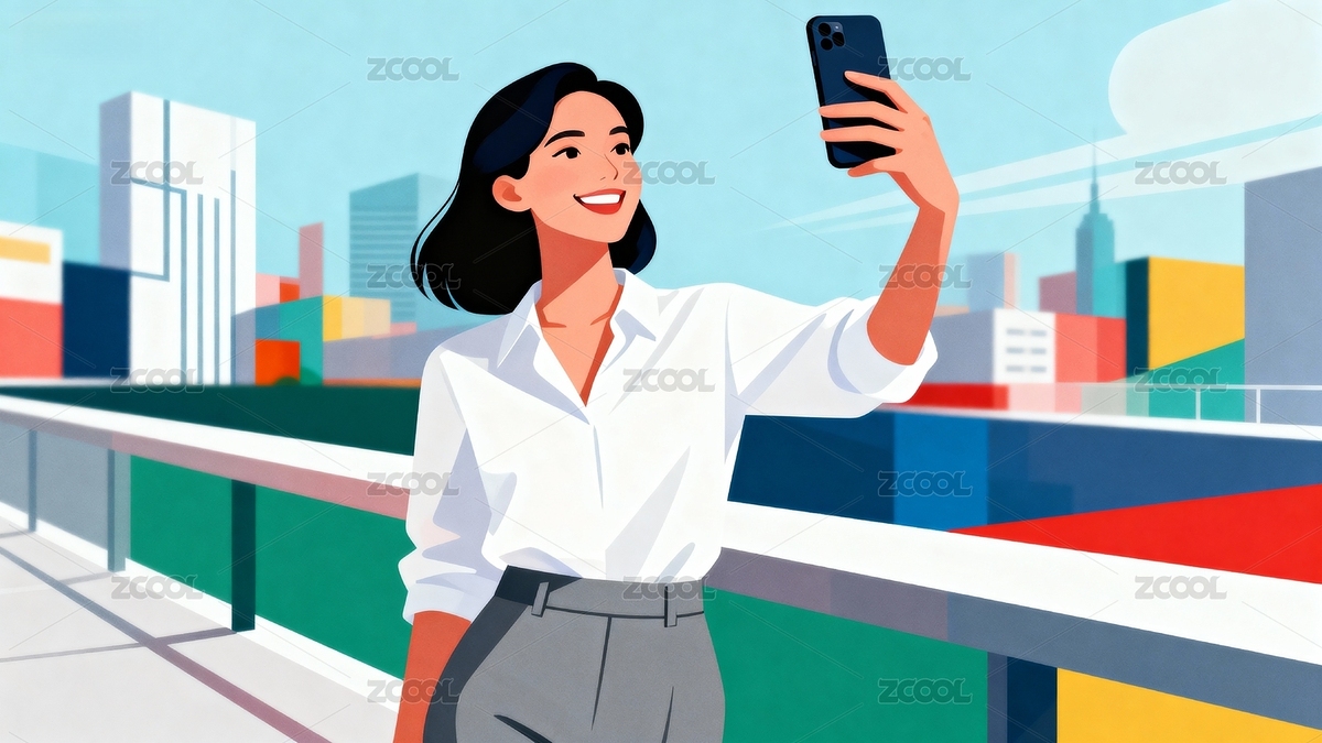 卡通女生自拍插画